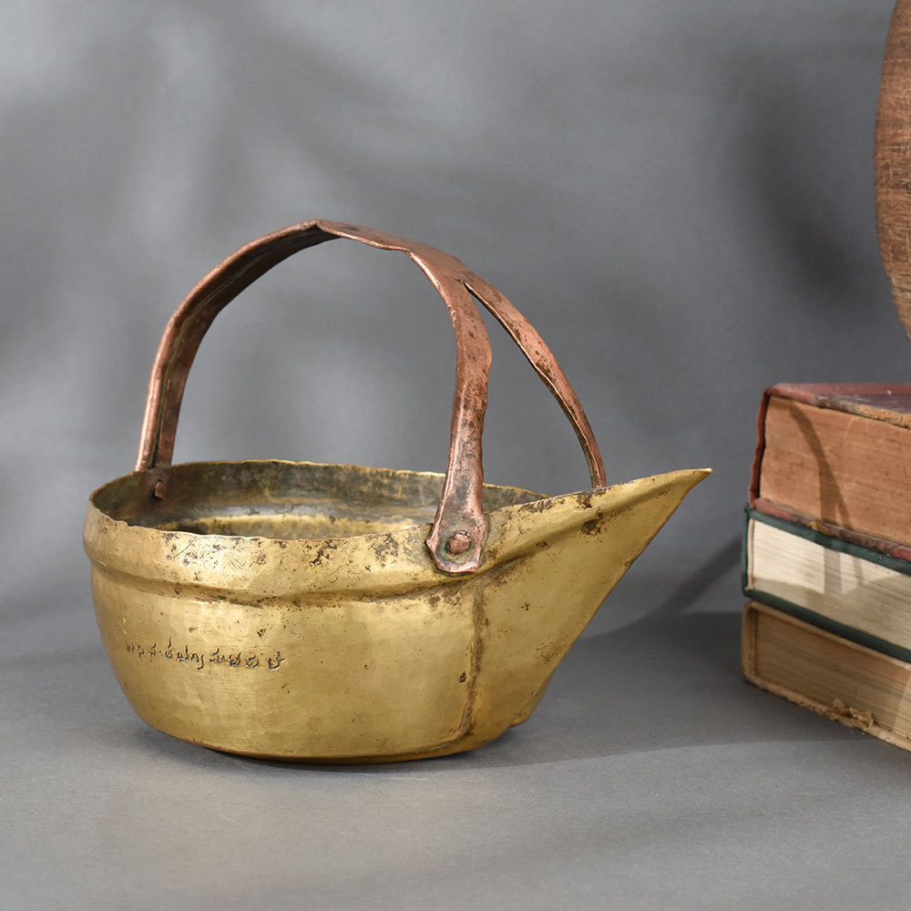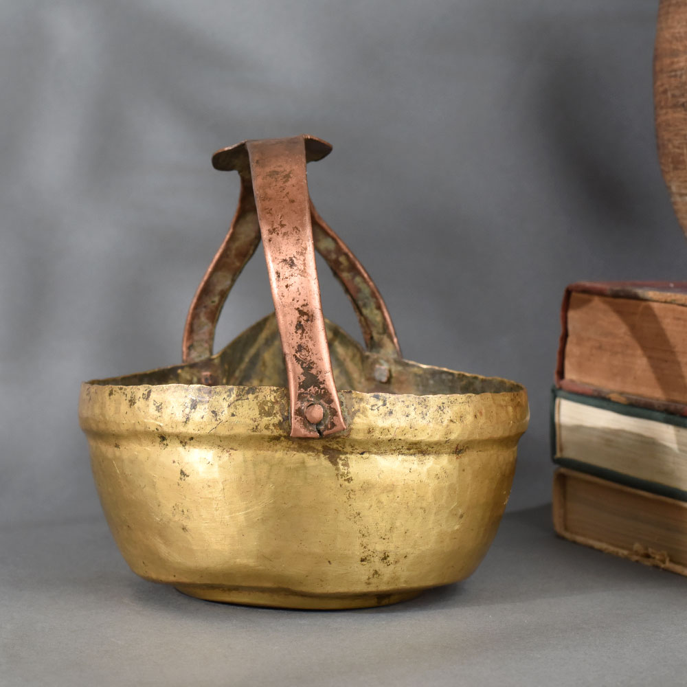Introduce rustic elegance into your space with this Vintage Brass and Copper Serving Pot, a traditional handcrafted vessel reflecting authentic Indian heritage. This unique pot features a solid brass body with a distinct side spout for pouring and a handcrafted copper handle riveted to the rim for strength and ease of use. The naturally aged patina and hammered surface texture give it an antique character, making it perfect for use in rituals, as a water container, or as a statement décor piece in heritage-inspired settings. Its blend of metals and functional form add charm and utility to any vintage collection.
