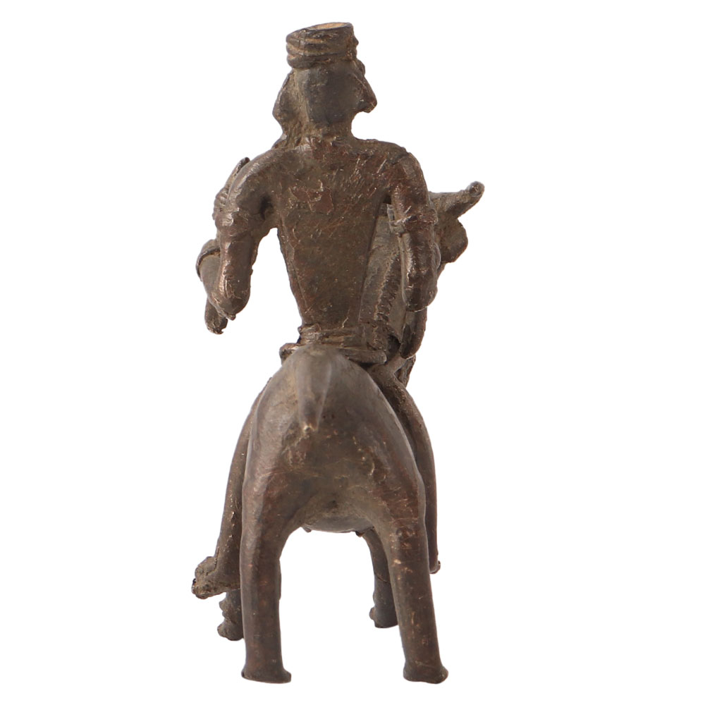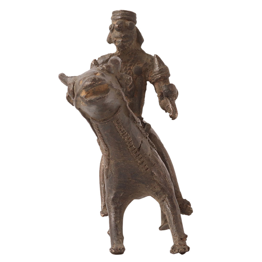 A vintage style statue of an animal and the rider made of high quality brass. Buy this brass statue online from our website and get it delivered to your doorstep. This brass sculpture is made by skilled Indian craftsmen and looks amazing with its attention to detail. Brass statues are usually more reliable and sturdy than stone statues. They spread positive energy in the environment which makes the person stress free and calms the mind. Place this statue with sophisticated design on your table, shelf, altar or reception to catch the eyes of your visitors and guests. Enhance the interior or exterior decoration of your home, restaurant or office with this beautiful tribal art statue. Gift for special and festive occasion for your loved ones.