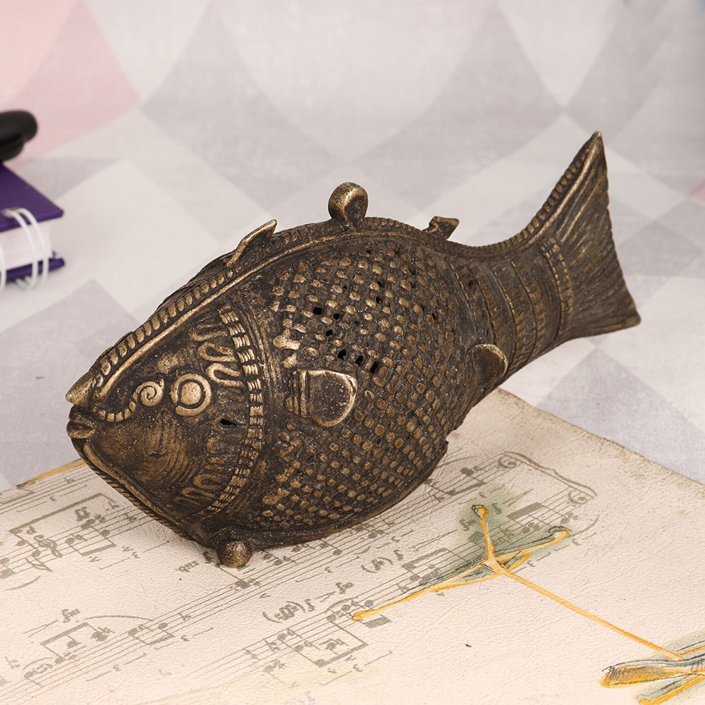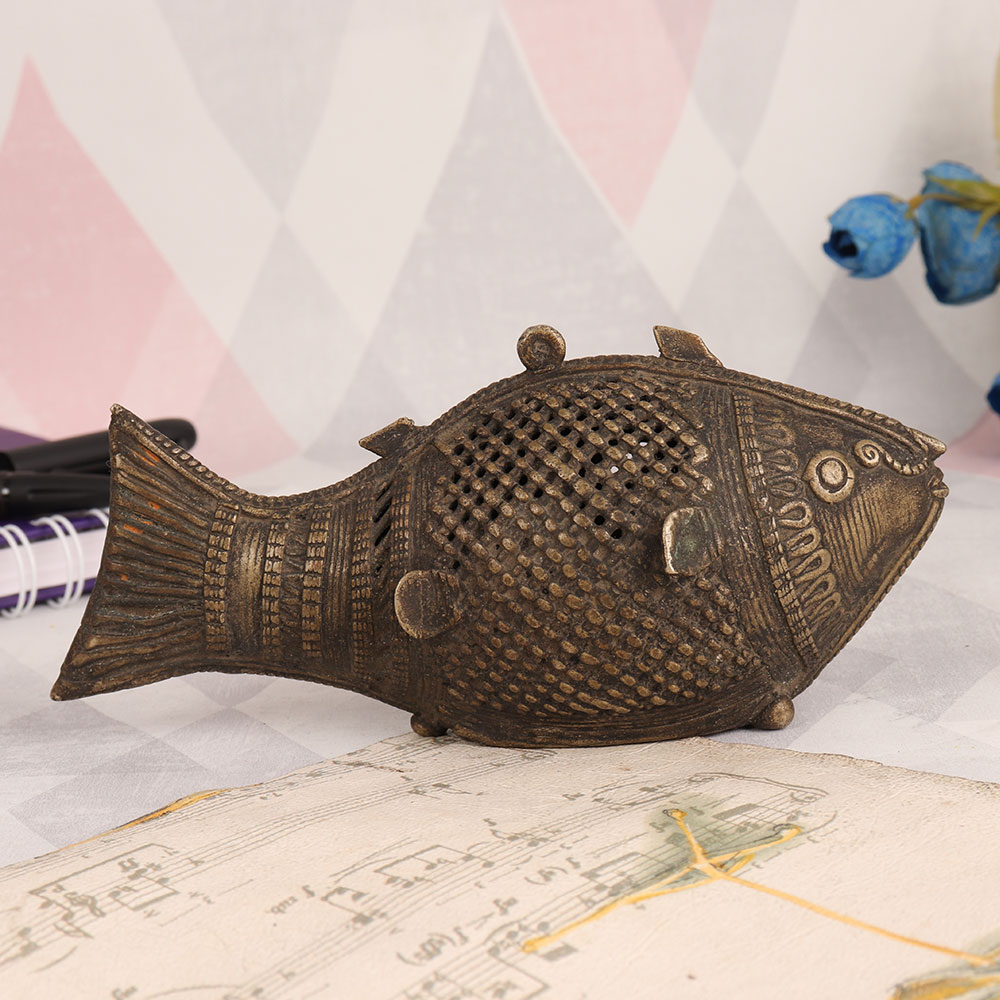 Adorn your decor with the exquisite charm of our handmade Brass Fish Statue that is crafted by skilled Indian artisans. This stunning piece features an antique brown finish that lends it an air of timeless elegance. Crafted from high-quality brass, this fish statue embodies exceptional craftsmanship and attention to detail. Its versatile design makes it a perfect addition to various settings, including your home, office, restaurant, hotel, cafe, or shop. Place it on a mantel, desk, or shelf to instantly elevate the ambiance with its artistic allure. Beyond its decorative appeal, this brass fish statue also doubles as a functional item. Use it as a paperweight to add a touch of sophistication to your workspace. Its intricate design and antique finish make it a prized addition to any vintage collection or exhibition. Celebrate special occasions by gifting this exquisite piece to your family, friends or relatives, making their day even more memorable. Whether it's a festive celebration or an auspicious event, this Brass Fish Statue is a timeless and meaningful present that will be cherished for years to come.