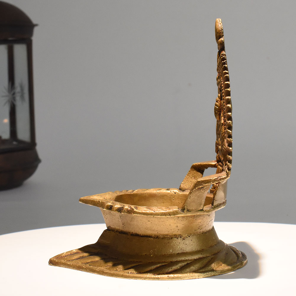 Bring home the grace of traditional Indian craftsmanship with this vintage brass Gajalakshmi deepam. The lamp showcases Goddess Lakshmi flanked by two divine elephants, symbolizing wealth, protection, and auspicious beginnings. Its wide oil reservoir ensures a steady flame suitable for aarti and meditation practices. The antique style detailing on the backdrop arch highlights classic patterns reminiscent of heritage temple art. This lamp is crafted from high quality brass, offering both durability and cultural appeal. Ideal for spiritual rituals, home altars, and ceremonial events, the lamp adds an elegant and devotional aura to any setting. Its deep spiritual symbolism and old world charm make it a valuable gift for loved ones who cherish meaningful artifacts. From festivals to daily worship routines, this deepam radiates positivity and reverence, creating a serene environment for prayer and reflection.