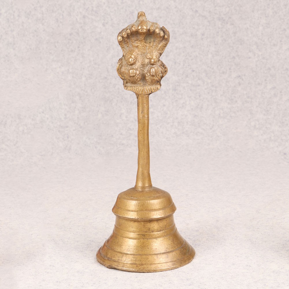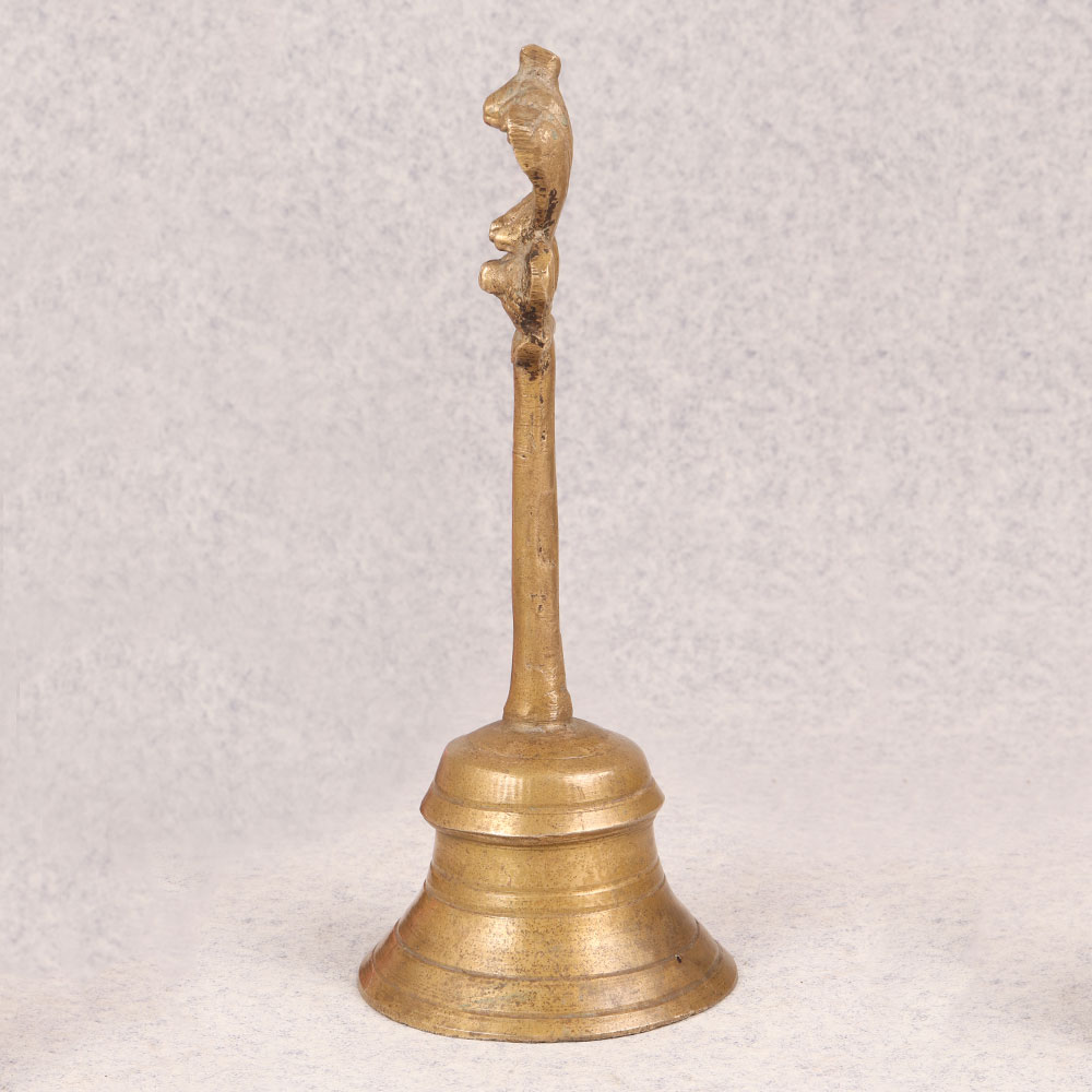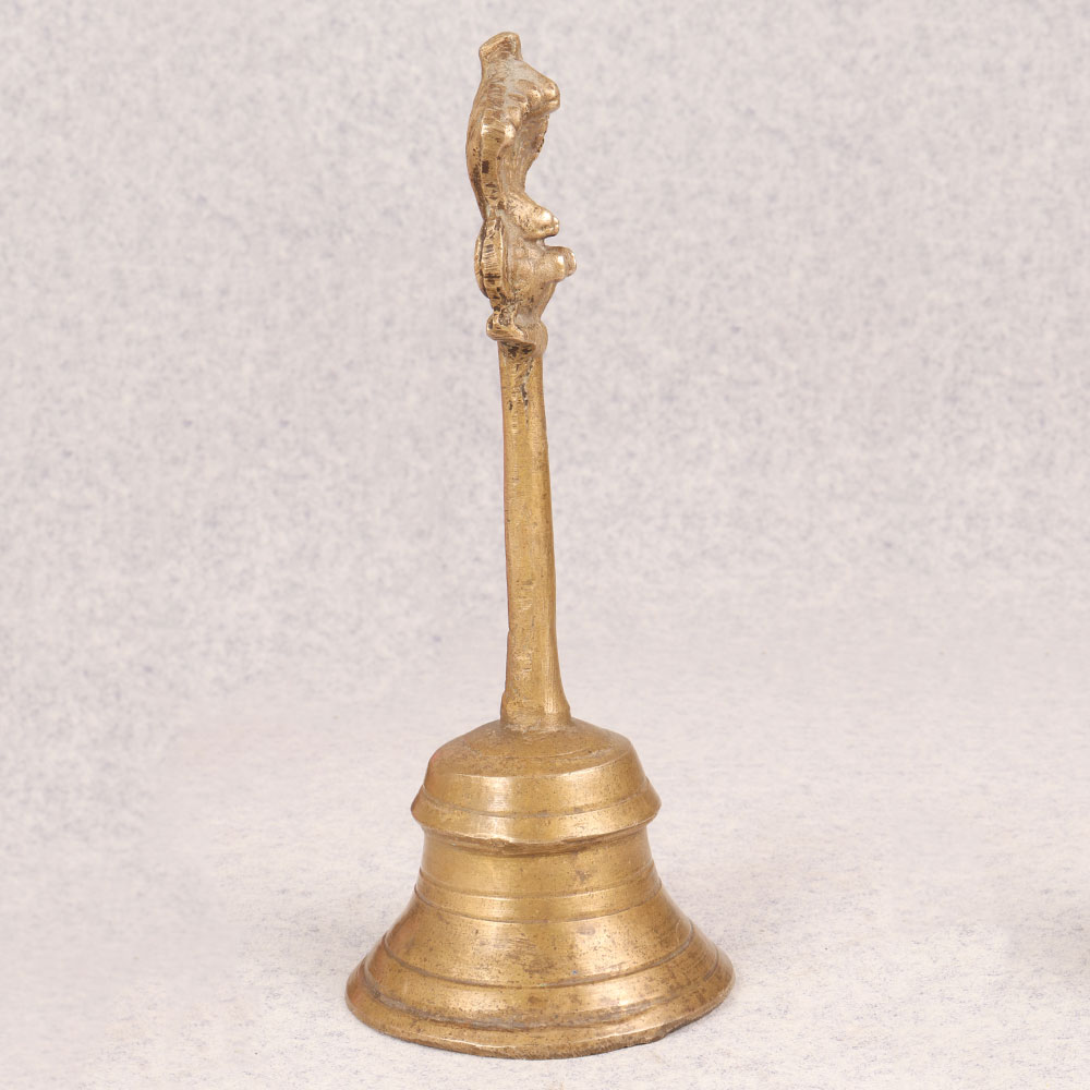 Enhance your space with the timeless charm of our Vintage Brass Bell that is a masterpiece crafted by highly skilled Indian artisans. This exquisite bell is made from high-quality brass, boasting a lustrous antique brown finish that adds a touch of sophistication to any setting. The distinctive handle ensures easy use, while the crowning glory lies in the detailed carving of Lord Garuda adorning the top. Immerse yourself in the rich cultural heritage as you place this bell in your home, office, restaurant, hotel, or café prayer room. The spiritual significance of Lord Garuda enhances the bell's aura, making it a perfect addition to your sacred space. Embrace the nostalgia and elegance of the past by incorporating it into your vintage collection. Beyond personal indulgence, this handmade brass bell serves as an ideal gift for your family, friends or relatives on special, festive, or auspicious occasions. Its symbolic value, coupled with the craftsmanship, makes it a thoughtful and meaningful present that transcends time.