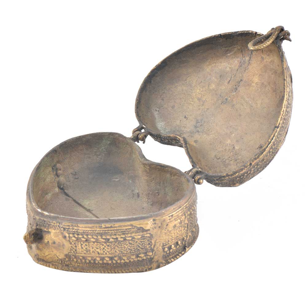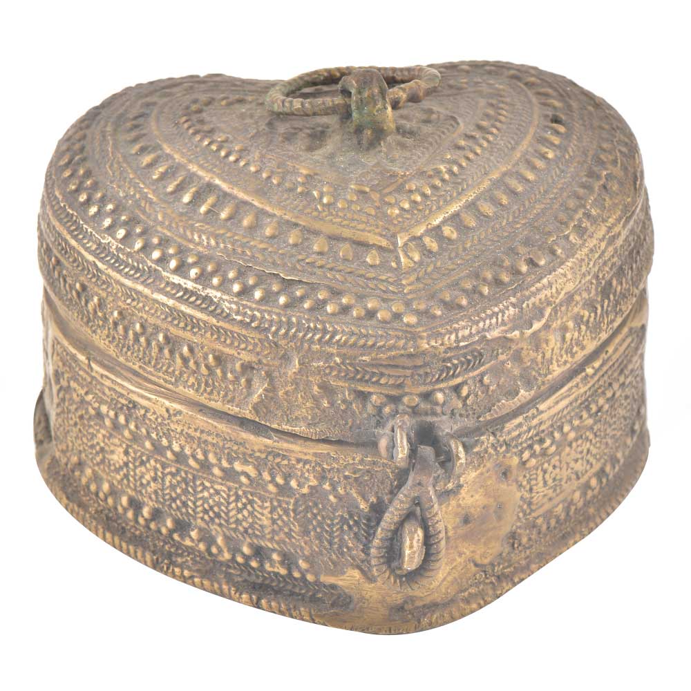 Beautiful vintage looking brass jewellry box has an ornate heart shaped pattern . Very pretty decor for the vanity or shelf Perfect for jewelry, trinkets, or what not.