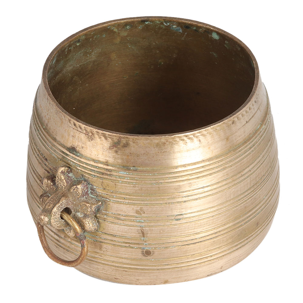 A handmade holy pot for decoration in the home, office or restaurant. This pot is made of Brass by skilled artisans with their hands. It has two handles to hold it with grip. This pot is engraved with circular rings pattern and has a flat surface. This attractive holy pot is often used as indoor flower pot in home, office, hotel or restaurant. Exhibit this decorative piece filled with water and floating flowers to beautify the indoor space. An ideal gift for festive and special occasion for your loved ones.