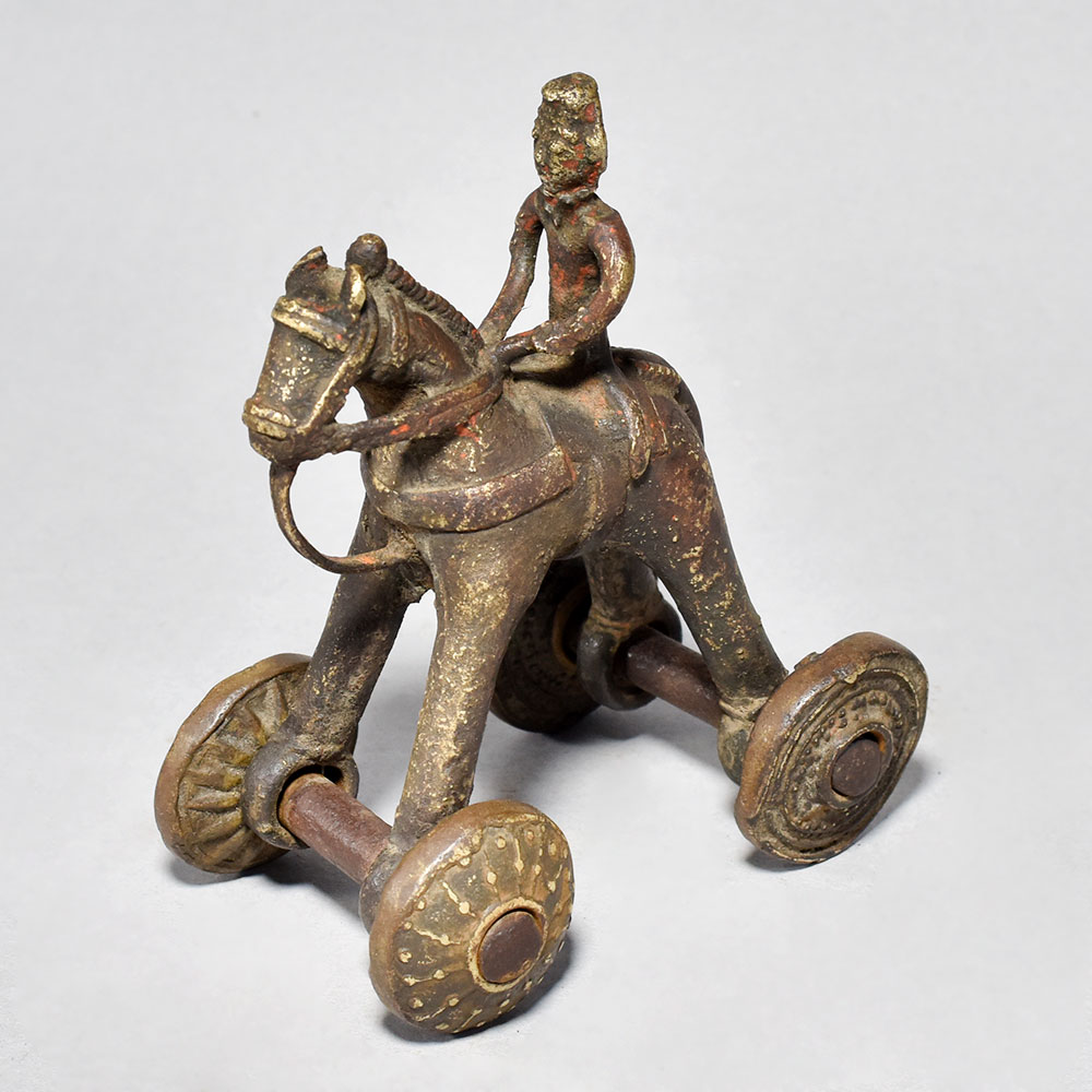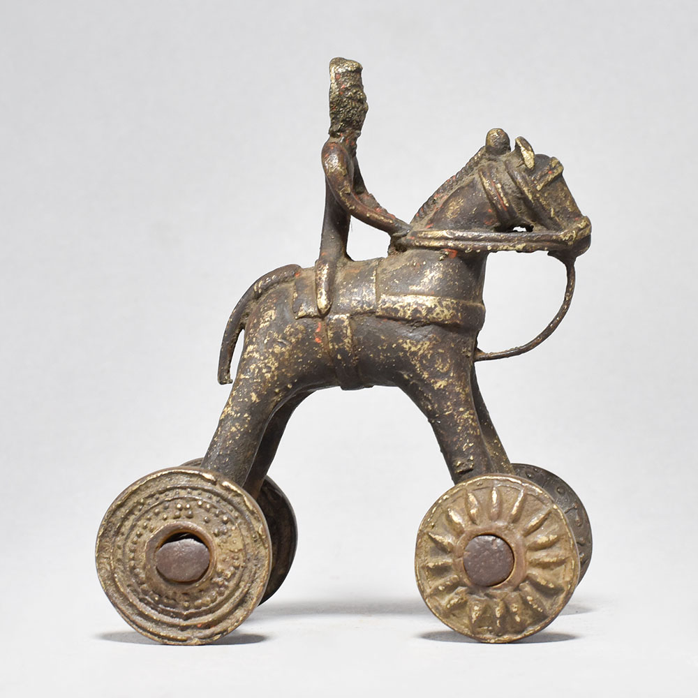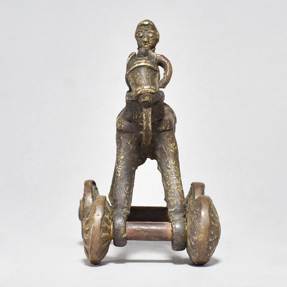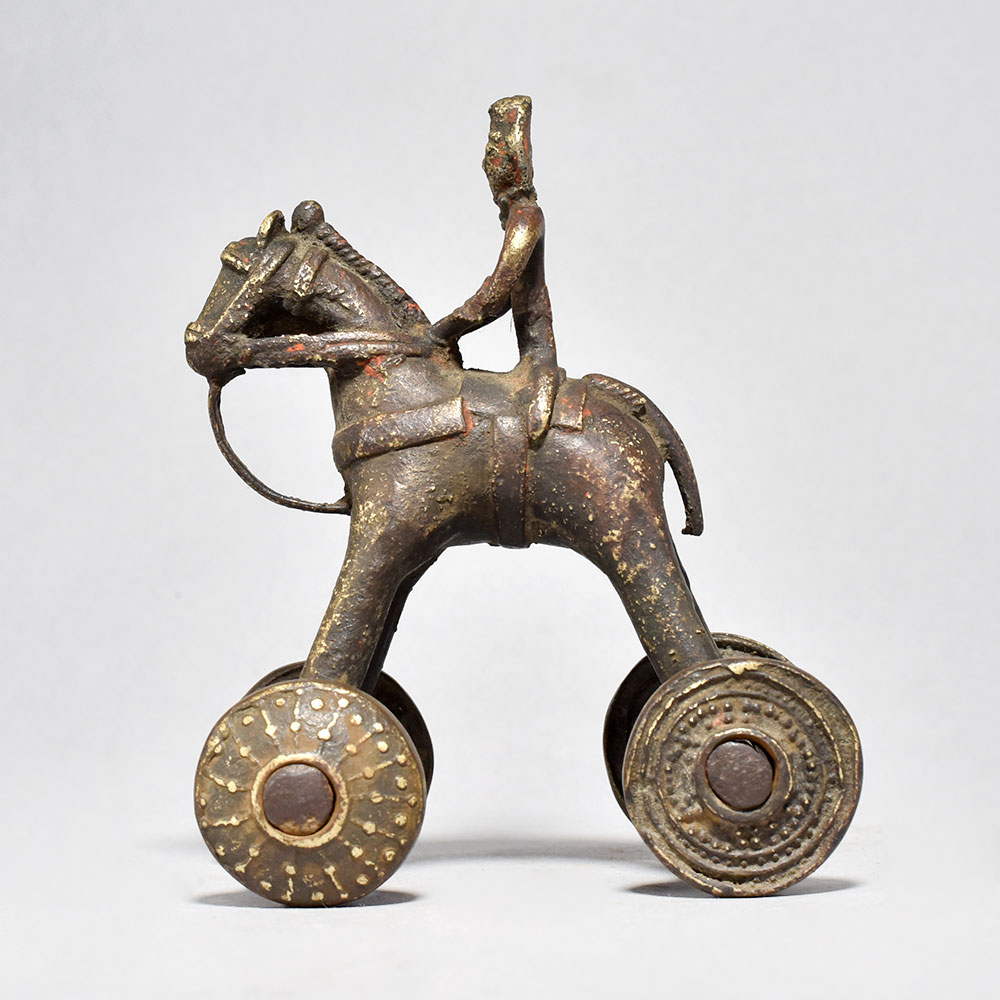 Rediscover the magic of the past with the Vintage Horse on Wheels with Rider, a breathtaking work of art that celebrates India's rich cultural heritage.This captivating piece is a true testament to the skill and artistry of India's master craftsmen. Display it proudly in your home as a conversation starter or give it as a one-of-a-kind gift that will be cherished for years to come. Bring the romance and elegance of the past into your life with the Vintage Horse on Wheels with Rider. Handcrafted in brass by skilled artisans in central India Depicts a horse-drawn carriage with a regal rider in an intricate, playful design Features exquisite details like the horse's harness and working wheels Captures the timeless charm and craftsmanship of a bygone era This unique handcrafted piece is a testament to traditional artistry, blending functionality with beauty and making it a treasured collectible for years to come.