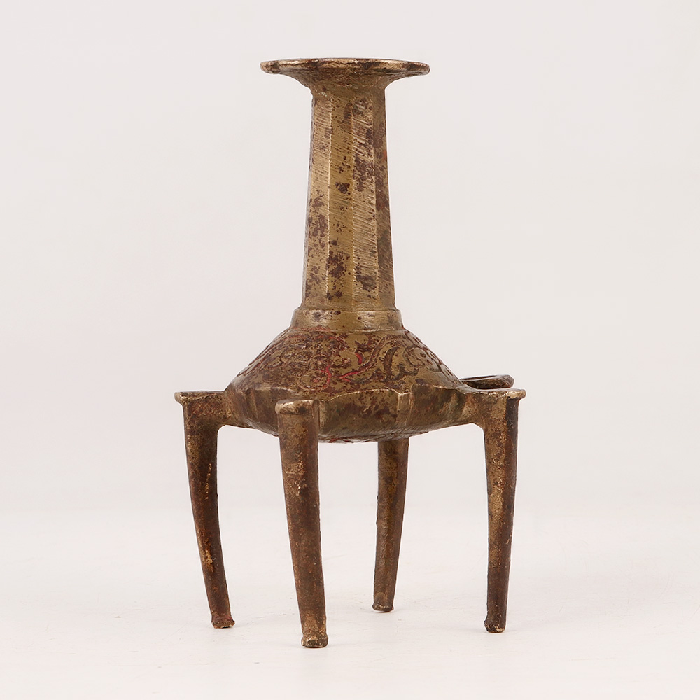 This Vintage Brass Incense Burner with four stands is a timeless piece of art crafted by highly skilled Indian craftsmen hailing from the majestic region of Rajasthan. This incense burner exudes an air of sophistication and elegance, owing to its finest-quality brass construction that guarantees both durability and allure. Handcrafted with utmost care and attention to detail, this incense burner serves as a versatile addition to any space. Whether adorning the comforts of your home, the ambiance of an office, the luxury of a hotel, or the charm of a restaurant, it effortlessly adds an aesthetic touch to interiors, setting the mood for relaxation and tranquillity. Enhance the ambiance during special occasions and cherished moments with loved ones by filling the air with fragrant incense. This vintage brass incense burner is not only a functional delight but also an exquisite piece to cherish, making it a splendid addition to your vintage collection or a showpiece worthy of display at a museum or exhibition. What's more, this masterpiece of craftsmanship serves as an ideal gift for your loved ones on special or festive occasions, spreading the timeless allure and cultural richness of Indian heritage.