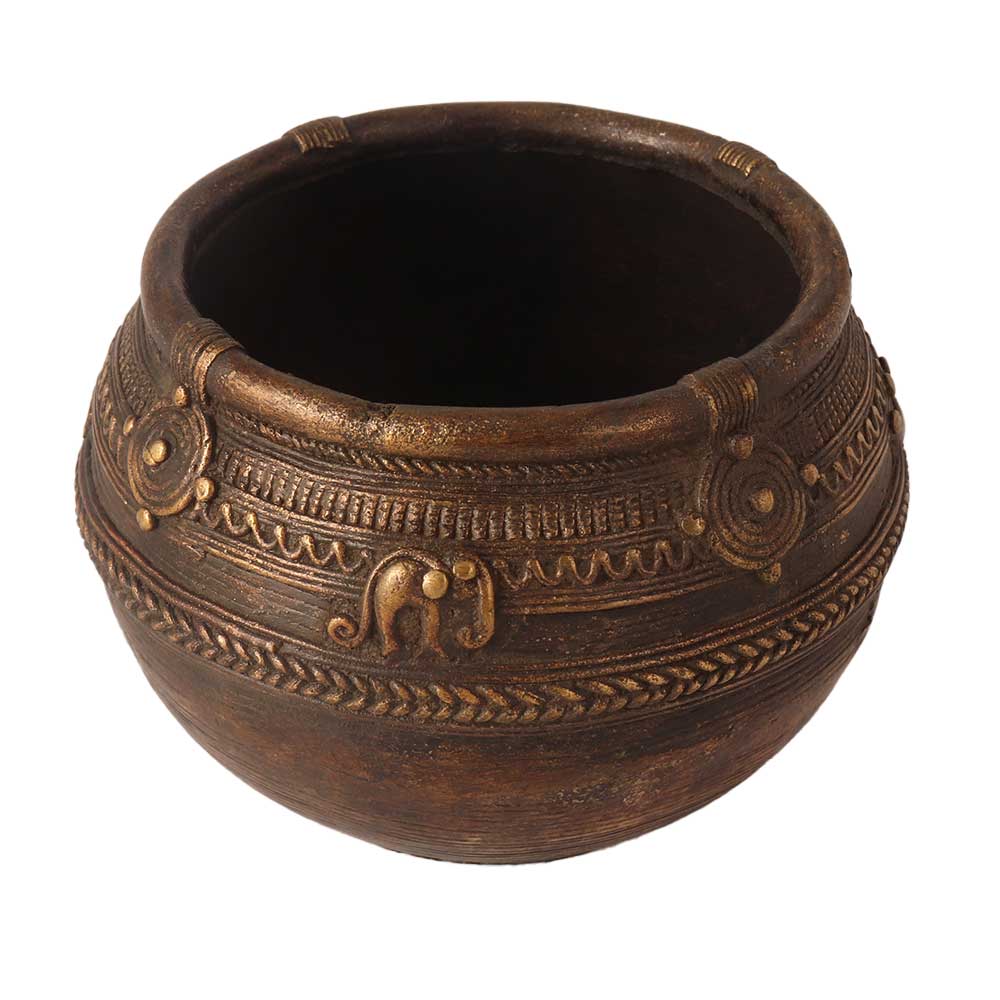 A brass rice measurement bowl on sale at a very fair price with beautiful engravings in a vintage style look. Decorate your home with this brass rice measuring or Mana bowl and have a unique and eye-catching interior stand out among other restaurants, hotels or cafes. This brass Mana bowl features an elegant brown finish that makes it a perfect item for your vintage collection and decoration. Buy this trendy brass bowl online from our website that is handcrafted from high quality brass by skilled local artisans from Odisha, India. A perfect gift for special and festive occasions for your family, friends or relatives to make them happy.