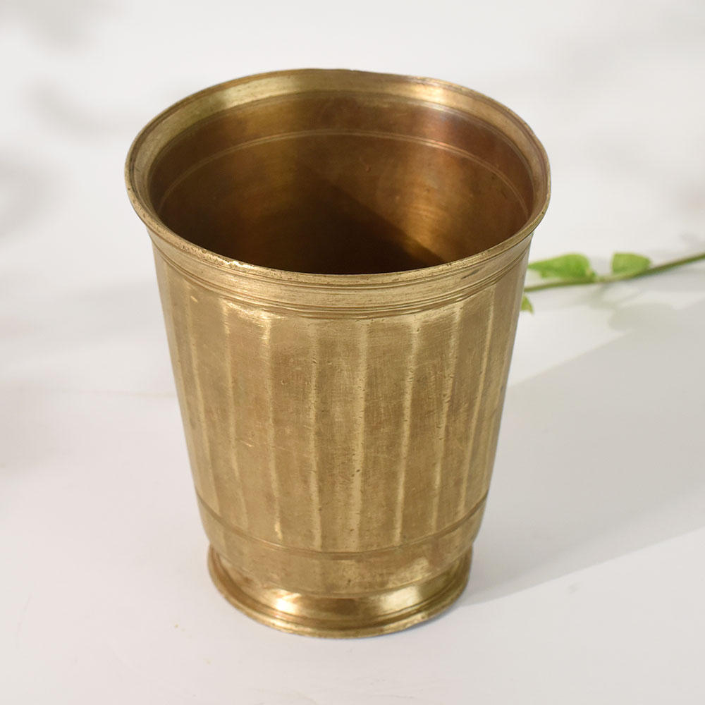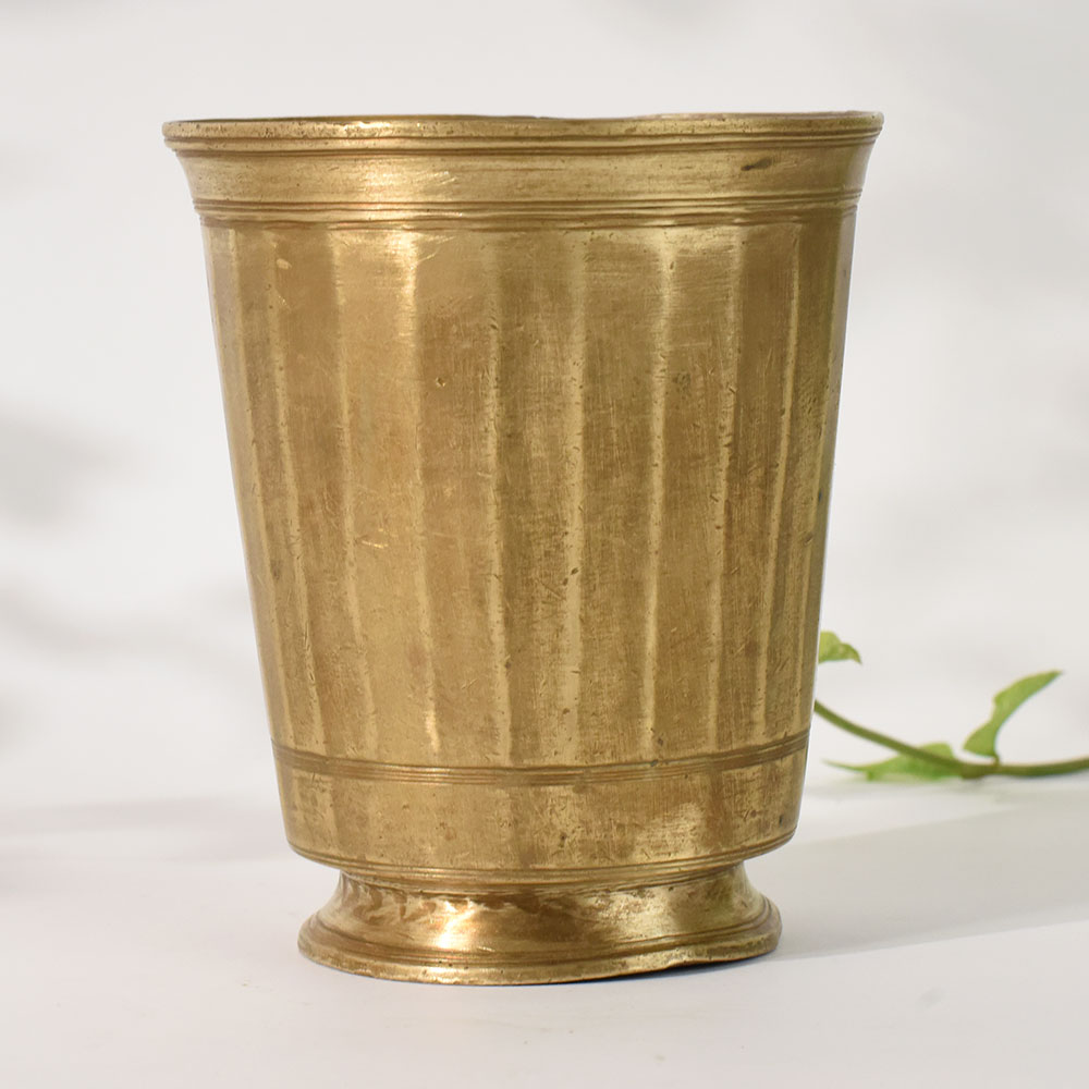 This Vintage Brass Panchpatra Holy Glass Pot is a beautifully handcrafted vessel traditionally used in sacred Hindu rituals. Made from solid brass, it carries a timeless charm that blends spiritual significance with collectible antique appeal. Its handcrafted finish, subtle aged patina, and tall cylindrical form make it ideal for temples, home altars, meditation corners, or as a statement accent for vintage decor lovers. In traditional ceremonies, the Panchpatra holds holy water, flowers, or offerings, symbolizing purity and divine energy. Today, it also appeals to collectors and interior stylists who appreciate authentic artisan-made brassware. Each piece reflects the skill of Indian craftsmen and brings an aura of serenity to any setting. Whether purchased for daily pooja, gifting, decor styling, or wholesale temple supply, this brass pot delivers durability, cultural depth, and aesthetic appeal. A meaningful piece for heritage enthusiasts and spiritual practitioners.