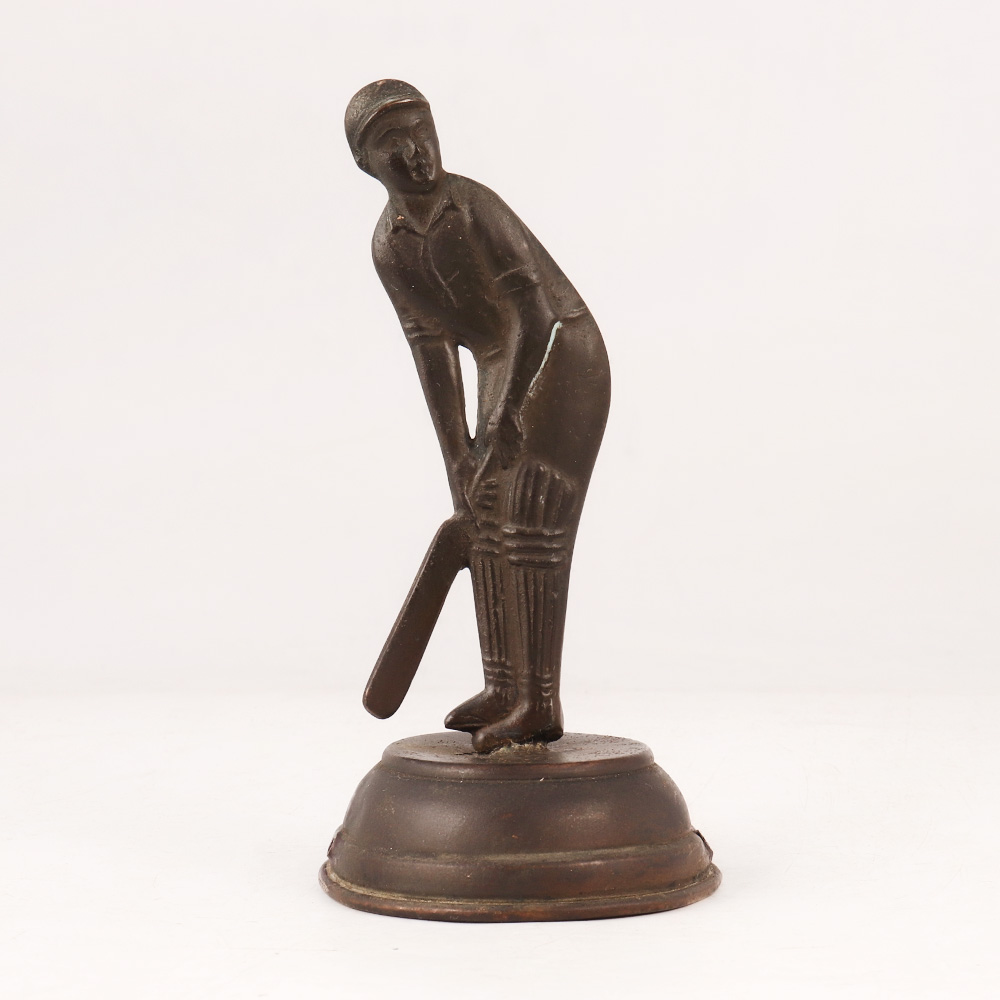 Behold the exquisite beauty of the Brass Cricket Player Statue, a masterpiece that captures the essence of the beloved sport in all its glory. Crafted from high-quality brass by skilled craftsmen, this remarkable sculpture stands proudly on a platform, frozen in time as a player eagerly awaits the incoming ball, bat in hand, ready to take on the challenge. The dark finish lends an air of sophistication and elegance to the statue, accentuating the intricate details and craftsmanship. Each stroke of the artisan's hand is evident, creating a lifelike representation that stirs emotions and memories of cricketing moments. Versatile in its purpose, this brass statue serves as a striking decorative piece that adds a touch of elegance to any setting. Place it in your living room, study, or office to showcase your passion for cricket and appreciation for art. Alternatively, this magnificent piece finds its place in museum collections, where its historical significance and artistry will be celebrated. Beyond being a symbol of admiration and fandom, this statue makes for a thoughtful and cherished gift. Present it to your family, friends or relatives on special or festive occasions, expressing your affection and acknowledging their love for cricket.