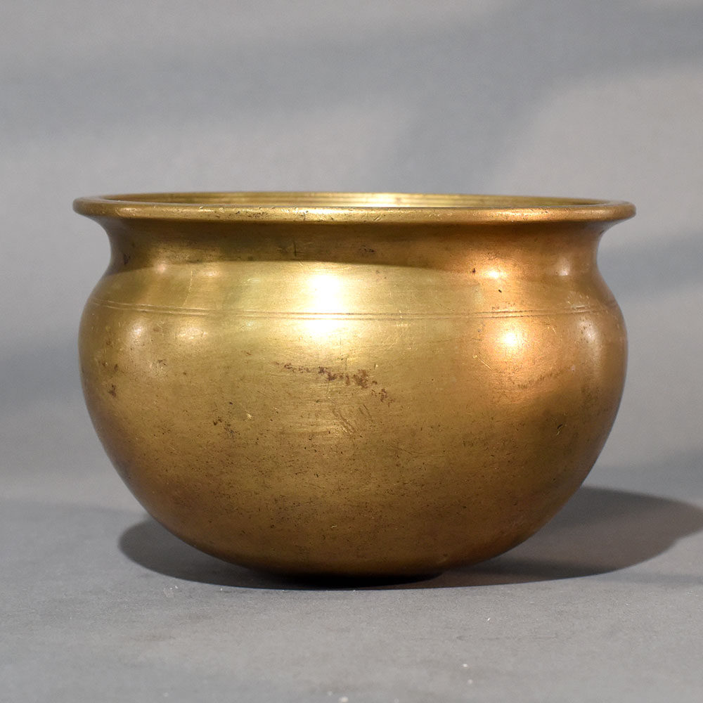 Rooted in Himalayan craft traditions, this vintage brass pot planter stands out for its simplicity and quiet strength. Its smooth, rounded body and wide mouth reflect a design philosophy where function and beauty coexist effortlessly. Originally crafted for everyday and ceremonial use, such pots were often part of domestic rituals, temple offerings, and seasonal flower arrangements. The brass has matured gracefully over time, developing a warm, muted sheen that cannot be replicated artificially. This aged finish adds depth and authenticity, making the pot an excellent choice for displaying flowers, dried botanicals, or sacred leaves. Whether placed on a low wooden platform, a console table, or near a window, it instantly grounds the space with an earthy, collected feel. Unlike ornate decor, this planters charm lies in its restraint. It pairs beautifully with modern interiors seeking contrast, as well as traditional spaces that value heritage objects. Use it during festive occasions, spiritual rituals, or simply as a sculptural planter that brings texture and warmth into your home.