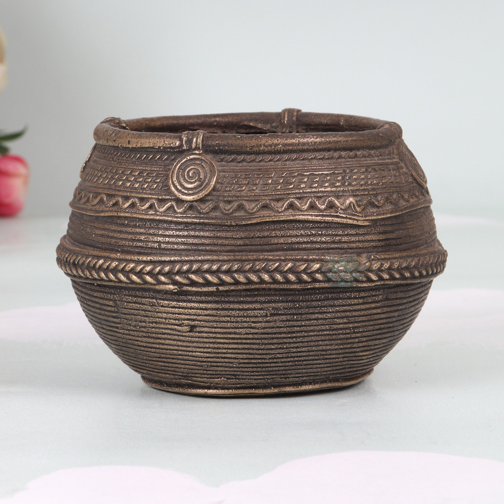 Unlock the secrets of traditional Indian cooking with this exquisite vintage brass rice measurement bowl from Odisha Art. Meticulously crafted with intricate embossed designs, this stunning piece seamlessly blends function and artistry, inviting you to immerse yourself in the rich culinary heritage of Odisha. Imagine the joy of reconnecting with the time-honored traditions of Indian cuisine. This brass bowl allows you to measure your ingredients with the same care and attention that generations of Odisha's cooks have. Whether you're preparing a fragrant biryani or a delicate raita, this timeless tool will elevate your cooking experience and infuse your dishes with the essence of Odisha's rich cultural heritage. But the beauty of this bowl extends beyond the kitchen. Its captivating design and warm metallic hue make it a stunning addition to any home decor. Display it on your shelves, dining table, or kitchen counter to showcase your appreciation for Odisha's artisanal craftsmanship. Let this vintage treasure spark conversations and inspire your guests to explore the wonders of Indian culture, all while adding a touch of timeless elegance to your living space.