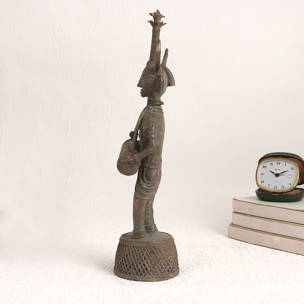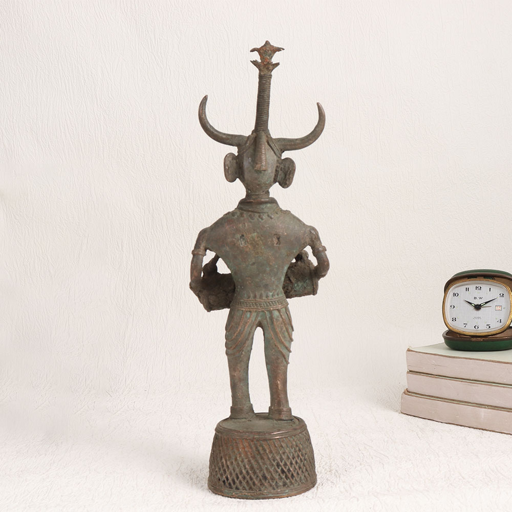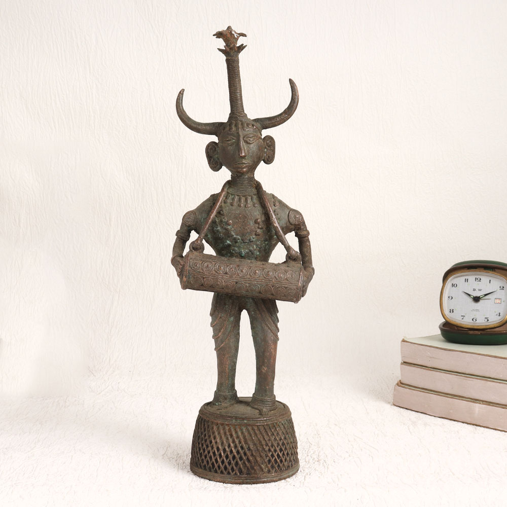Buy a Brass Male Figure Playing Drum online and get a hassle free delivery at your doorstep. This masterpiece is painstakingly crafted by skilled Indian craftsmen in the enchanting region of Nagaland and is a testament to their exceptional craftsmanship. Standing proudly on a platform, this brass figure captivates with its antique brown finish, evoking a sense of timeless elegance and sophistication. Its intricate detailing showcases the meticulous care and dedication of these talented craftsmen, making each piece truly one-of-a-kind. The Brass Male Figure Playing Drum is a versatile addition to your living space, be it at home, in the office, a restaurant, hotel, cafe, or shop. Its alluring presence can elevate any setting, whether contemporary or classic, adding a touch of heritage and artistry to your surroundings. Perfect for collectors, this piece is an excellent addition to your vintage collection or a striking exhibit at an art gallery or exhibition. Additionally, it makes for an extraordinary gift, imparting a sense of tradition and luxury on special, festive, or auspicious occasions.