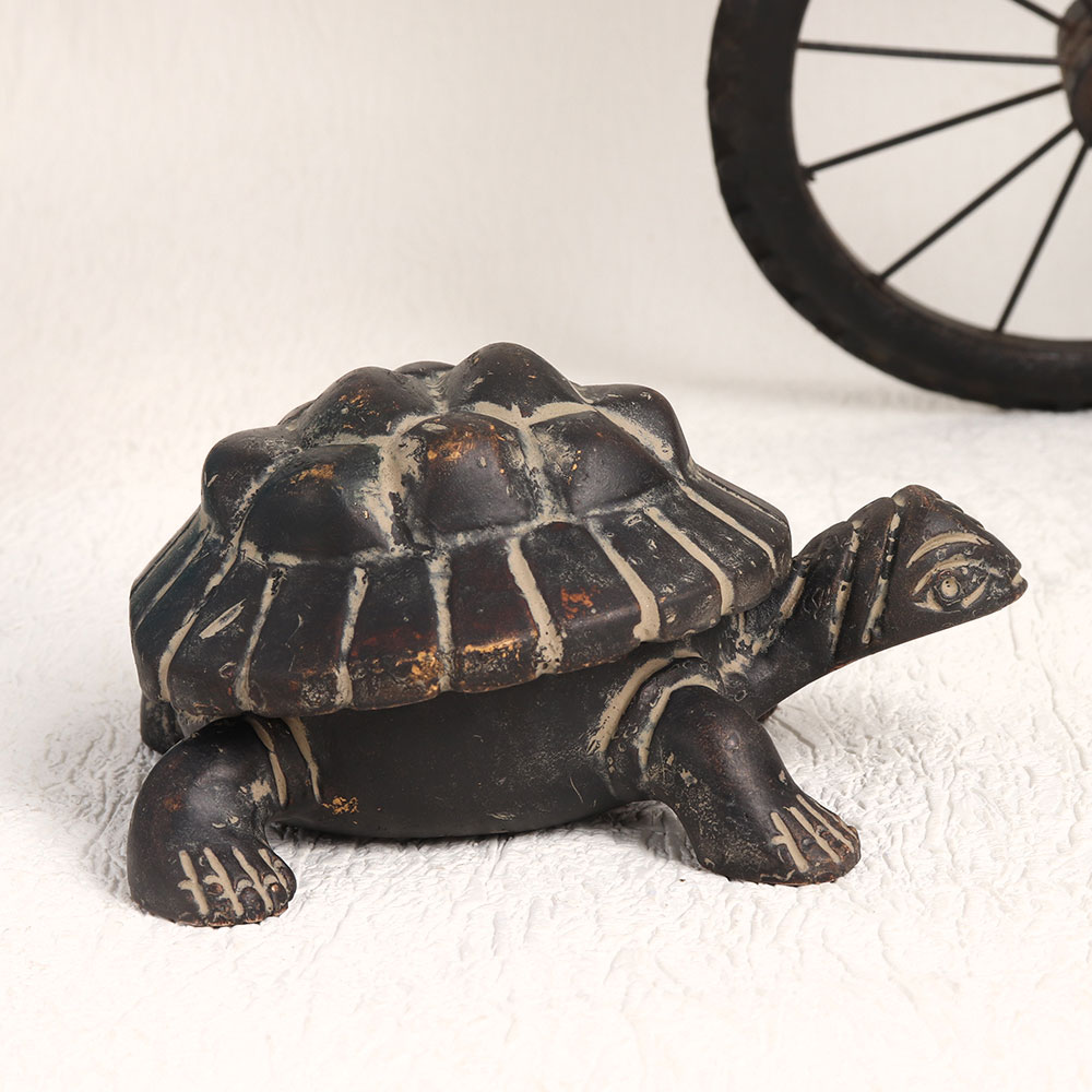 Buy a Vintage Brass Turtle Yantra online from our website and get a hassle free delivery at your doorstep. Handmade with meticulous precision by talented Indian artisans, this exquisite piece exudes an aura of antiquity with its rich dark finish. Forged from high-quality brass, this artisanal masterpiece serves multiple purposes, making it a versatile addition to your surroundings. At home, it transforms any space into a haven of vintage charm, infusing it with a sense of history and mystique. In an office, restaurant, hotel, cafe, or shop, it becomes a captivating focal point, drawing admirers into its intricate details. This sacred artefact is not merely ornamental, it holds the power to inspire positive energy and spirituality. Use it for prayers and meditation, allowing its spiritual essence to imbue your environment. On special, festive, or auspicious occasions, consider gifting this Vintage Brass Turtle Yantra to your family, friends or relatives. It symbolizes not just the artistry of India's past but also the enduring connection between tradition and the contemporary world, making it a truly heartfelt and meaningful gift.