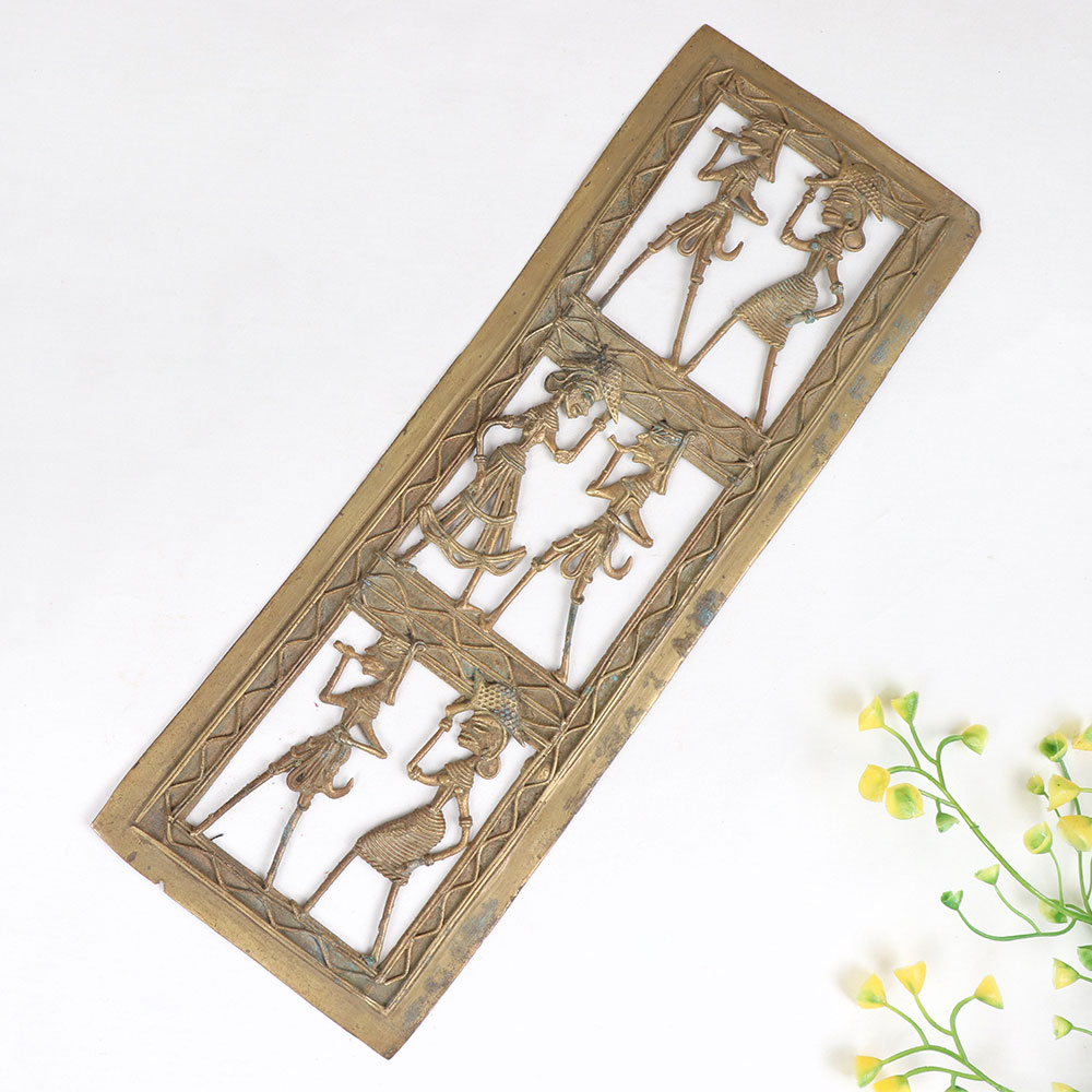 Immerse yourself in the rich cultural tapestry of Indian craftsmanship with our exquisite Vintage Brass Tribal Wall Art. Handcrafted by highly skilled artisans in Tribal Art, this captivating piece showcases an intricate jali work that transports you to a bygone era. The antique brown finish adds a timeless allure, enhancing the vintage charm of the artwork. Six figures, each engaged in the joyous act of playing musical instruments, are expertly rendered in high-quality brass. Their dynamic poses and the harmonious interplay of instruments create a visual symphony that captures the essence of tribal celebrations. This masterpiece seamlessly blends tradition with artistry, making it a versatile addition to any space. Whether adorning the walls of your home, office, restaurant, hotel, or cafe, this brass wall art effortlessly elevates the ambiance, infusing warmth and cultural significance. Ideal for collectors seeking unique vintage pieces, this artwork promises to be a standout addition. Embrace the spirit of gifting by presenting this masterpiece to your family, friends or relatives on special, festive, or auspicious occasions.