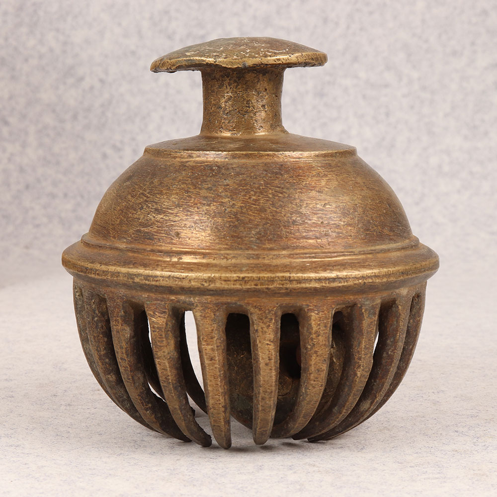A Vintage Bell Metal Elephant Bell that is a magnificent piece of artistry handmade by skilled Indian artisans. This bell is crafted from high-quality brass, showcasing the rich heritage of traditional craftsmanship. With its antique brown finish, it exudes an aura of timeless elegance, reminiscent of a bygone era. This bell finds its inspiration in the majestic elephants adorned with ornate decorations, and it serves as a splendid addition to your decor. The intricate detailing captures the essence of Indian culture and craftsmanship, making it a perfect embellishment for homes, offices, restaurants, hotels, or cafes. Its versatility allows it to seamlessly integrate into various settings, enhancing the aesthetic appeal of any space. This bell is not just a decorative piece but also a precious addition to any vintage collection. It carries the legacy of a bygone era, adding a touch of nostalgia to your surroundings. Ideal for gifting, this bell makes for a thoughtful present on special, festive, or auspicious occasions.