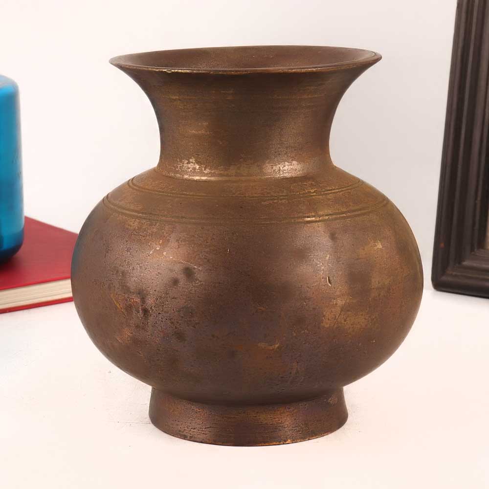 This Brass Holy Water Pot is a timeless masterpiece crafted by local artisans from India. Fashioned from high-quality brass and adorned with an alluring antique brown finish, this pot exudes an aura of elegance and charm. Versatility lies at the heart of this stunning artefact, making it a perfect addition to any setting. Whether placed in a home, office, restaurant, hotel, or cafe, it adds a touch of sophistication to the ambiance and serves as a captivating display piece in exhibitions or vintage collections. This sacred water pot serves a spiritual purpose as well, being a symbol of devotion and worship. It is ideal for offering water to deities like the Shivling at temples and the revered Sun God. When positioned in the north or east direction of a room, it radiates positive energy, infusing the surroundings with a sense of serenity and tranquillity. As a thoughtful gift, this brass pot is a token of love and affection that can be presented to your dear ones on special, festive, or auspicious occasions.