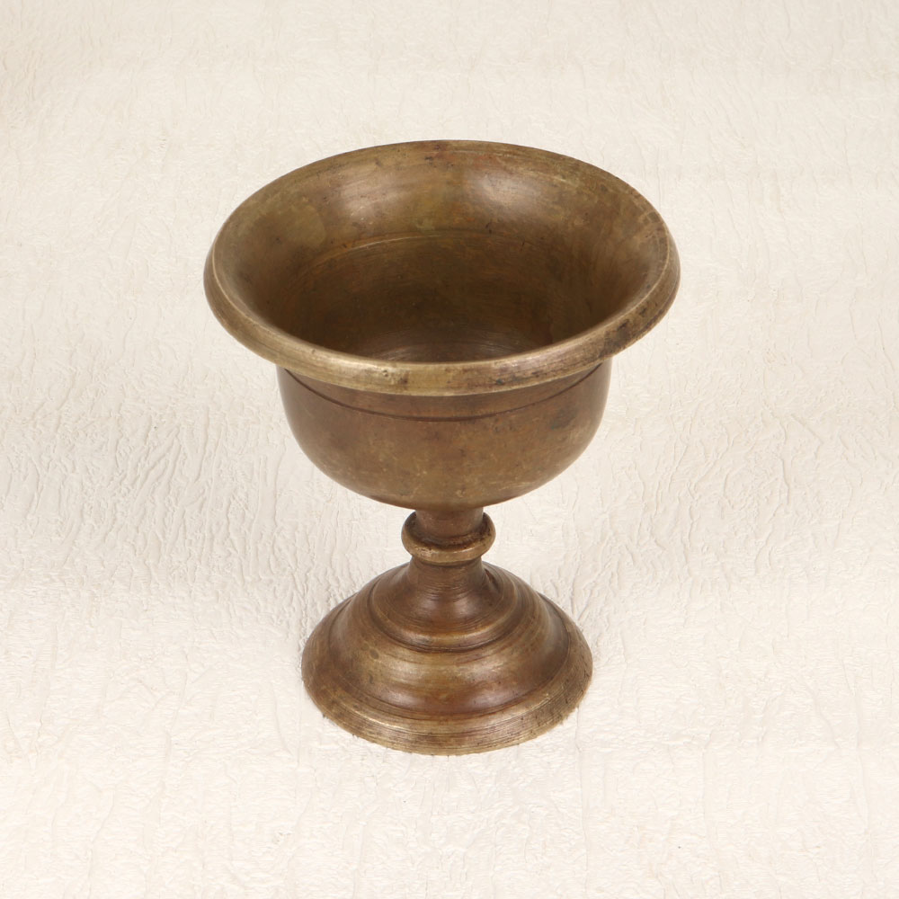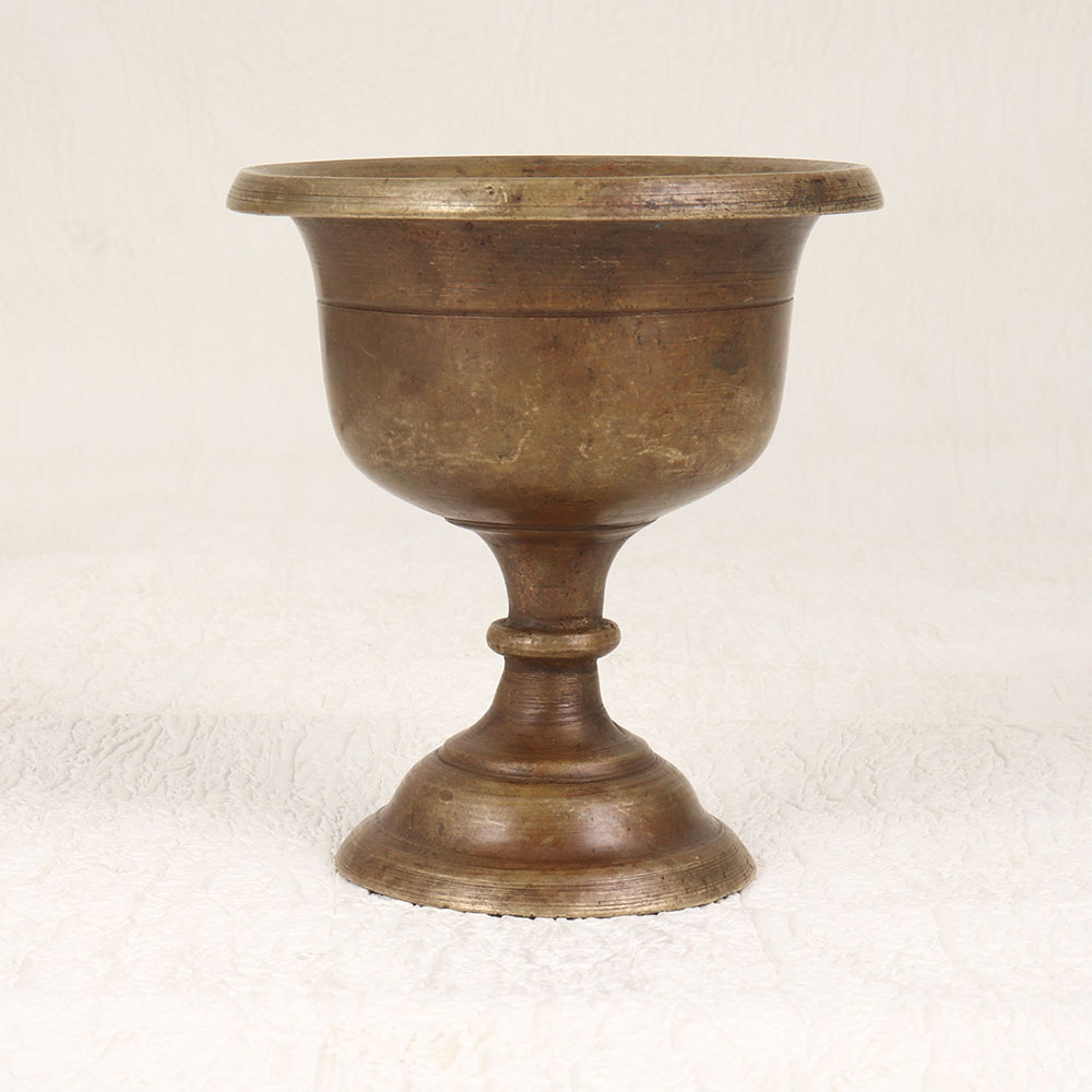 Enhance your spiritual space with the timeless elegance of our Vintage Brass Holy Cup. Handcrafted by skilled Indian artisans, this exquisite piece is fashioned from high-quality brass, showcasing a rich antique brown finish that exudes sophistication. Primarily designed to cradle kumkum tilak during prayers, rituals, and havans, this holy cup serves as a divine vessel connecting tradition with contemporary aesthetics. Its versatile design allows it to seamlessly adorn prayer rooms at home, offices, restaurants, hotels, or cafes. Beyond its sacred purpose, this cup doubles as a captivating decorative item, making it a perfect addition to your vintage collection. Cherish the spiritual ambiance it brings to your space or present it as a thoughtful gift to your family, friends or relatives on special, festive, or auspicious occasions.