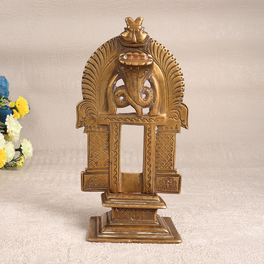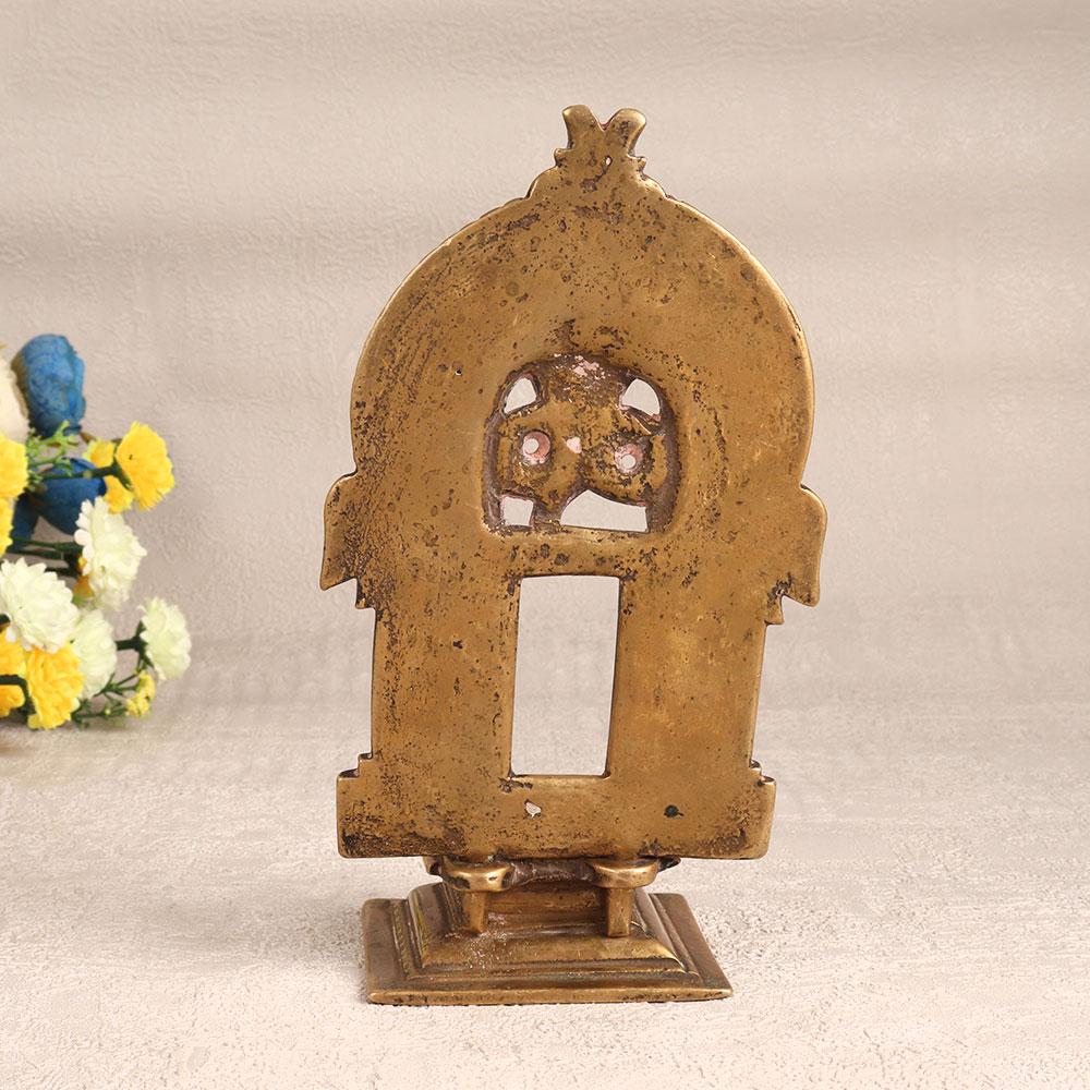 Decorate your home with the timeless elegance of this Vintage Brass Prabhavali with Base. Crafted with precision and care by highly talented Indian craftsmen, this stunning piece showcases the rich heritage of brass craftsmanship. Its antique brown finish exudes a warm, rustic charm, making it a captivating addition to any space. This prabhavali is a versatile decorative piece that can enhance the ambiance of your home, office, hotel, cafe, shop, or restaurant. Its intricate design and antique appeal make it a unique choice for those seeking to infuse a touch of traditional aesthetics into their surroundings. Display it proudly as a centerpiece or accent piece to create an alluring focal point. This handcrafted masterpiece isn't just for personal enjoyment, it's also an excellent addition to any vintage collection. Showcase it at exhibitions to share its cultural significance and artisanal excellence with a wider audience. Additionally, this Vintage Brass Prabhavali makes for a thoughtful and cherished gift, ideal for special, festive, or auspicious occasions.