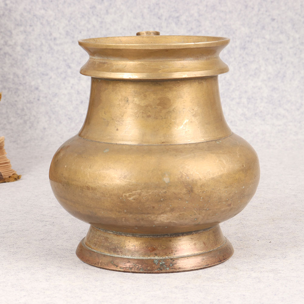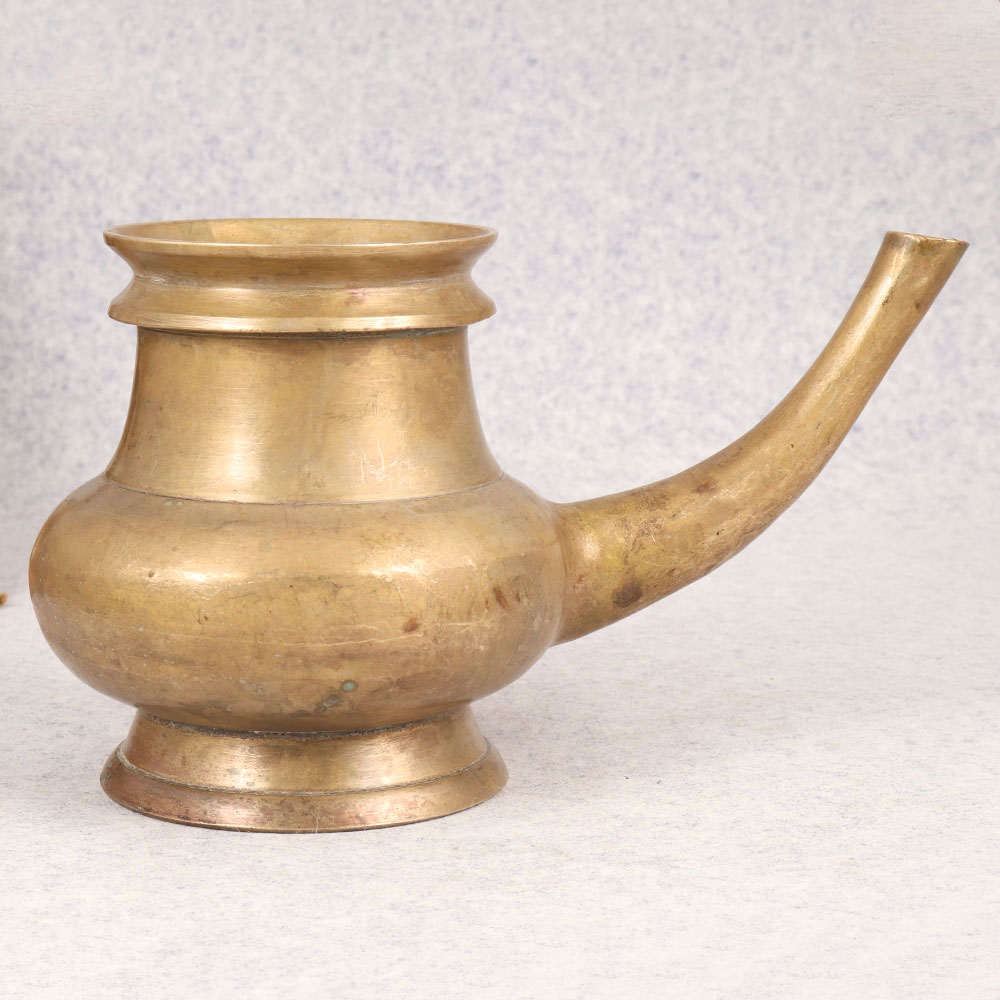 This Vintage Brass Sagar Water Pot with Spout is a timeless masterpiece handcrafted by skilled Indian artisans. Crafted from high-quality brass, this sacred vessel embodies the essence of tradition, making it an exquisite addition to any home, office, restaurant, hotel, or cafe prayer room. Its antique brown finish adds a touch of nostalgia and authenticity, creating an aura of reverence. Designed for ritual and prayer, this sagar water pot holds historical significance in temple ceremonies. Beyond its religious utility, it serves as a captivating decorative piece, effortlessly blending heritage with contemporary aesthetics. Placing this artefact in your space not only enhances the spiritual ambiance but also elevates the overall decor. The Vintage Brass Sagar Water Pot makes for a thoughtful and meaningful gift for your family, friends or relatives on special, festive, or auspicious occasions. Its antique allure and handmade charm ensure that it stands out as a cherished item in any vintage collection.