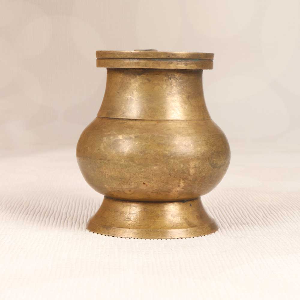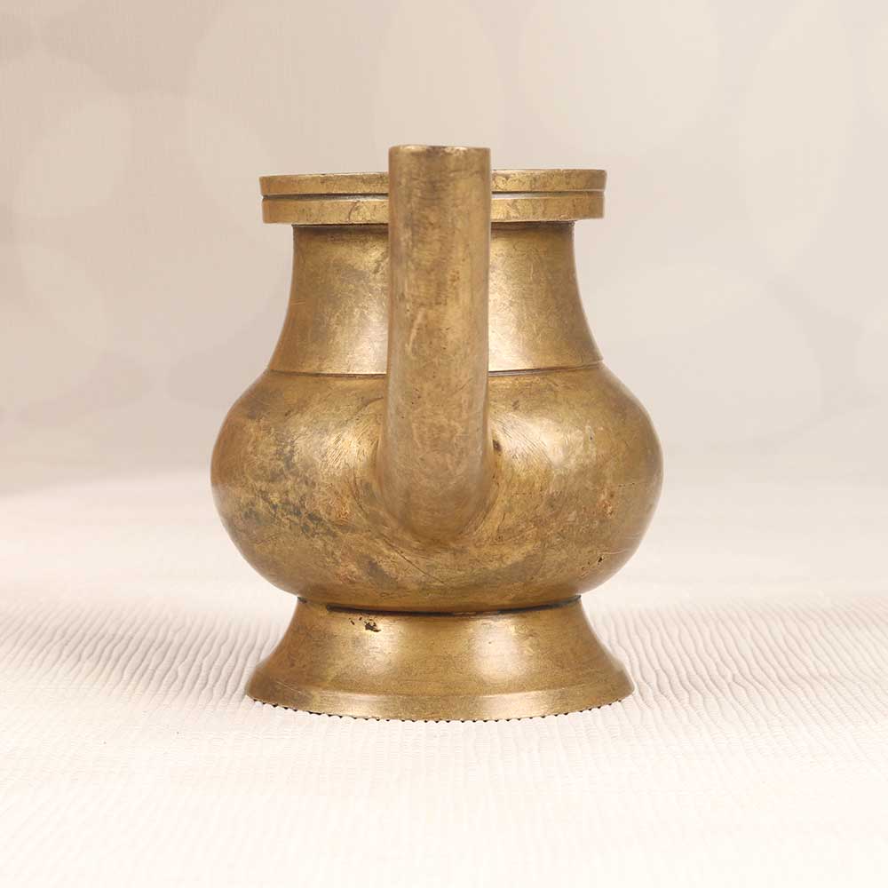 Bless your space with this vintage brass holy water pot. Featuring a built-in spout and ornate etchings, this striking pot provides a reverent vessel for your holy water. This pot allows you to keep holy water on hand for purification and blessing rituals. The spout allows you to easily dispense holy water during prayer or spiritual practice. Vintage brass construction gives this pot a sacred, time-honored quality. For spiritual devotees who want a special container for holy water, this striking brass pot delivers. The classic design and convenient spout help you honor traditions and connect deeply during rituals. Keep your holy water in a reverent vessel that elevates your sacred space.