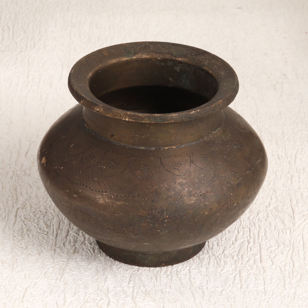 Buy a Vintage Brass Holy Water Pot online and get a hassle free delivery at your doorstep. This piece is a testament to the talented Indian artisans in South Indian Art who have poured their heart and soul into creating it. Crafted with precision and care, this holy water pot boasts a rich antique brown finish that adds a touch of elegance and nostalgia to any setting. Made from high-quality brass, this pot is not just a decorative piece but also a functional one. Its intricate engravings tell stories of tradition and faith, making it a cherished addition to your home, office, restaurant, hotel, cafe, or shop. Whether you want to adorn your space with a touch of spirituality or use it during havan and worship ceremonies to hold holy water, this pot serves as a versatile choice. Temples and prayer rooms can also benefit from its presence, as it is commonly used for sacred rituals. For collectors and enthusiasts, this piece is a valuable addition to your vintage collection or a striking exhibit at any exhibition. Furthermore, it makes for a thoughtful gift for your family, friends or relatives on special, festive, or auspicious occasions, embodying the essence of tradition and devotion in a single, beautifully crafted item.