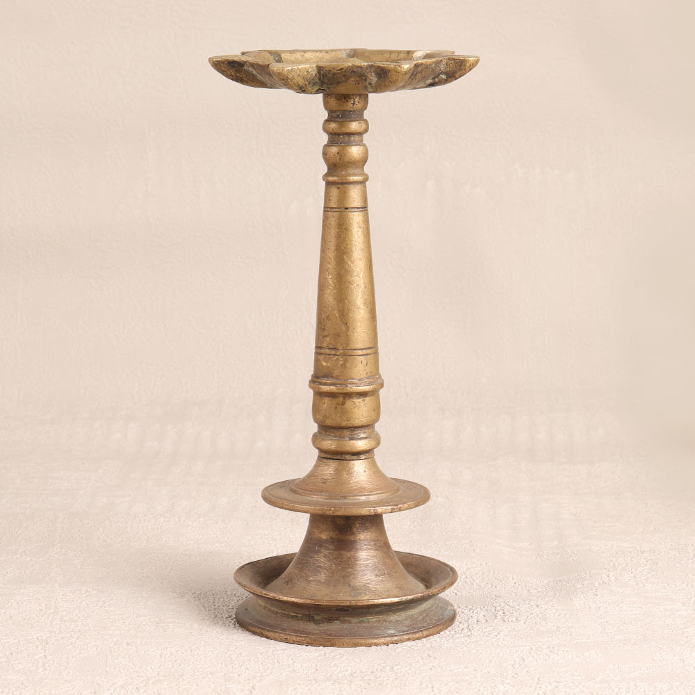 Decorate your home interior with the timeless charm of our exquisite Vintage Brass Oil Lamp. This magnificent piece is adorned with seven intricately crafted jyots (lamps) and is a testament to the rich heritage of Indian craftsmanship. Handcrafted by talented artisans in South Indian Art, this masterpiece boasts a deep antique brown finish that exudes authenticity. Crafted from high-quality brass, it's not only a visual delight but a functional work of art. The lamp is designed to be lit with mustard oil or ghee, using cotton wicks, just as it has been for generations. Whether placed in your home, office, hotel, cafe, shop, or restaurant, it creates an ambiance of serenity and nostalgia. It serves as a focal point in prayer rooms and adds a touch of vintage elegance to any space. For collectors, this lamp is a prized addition, making it a great exhibit for showcasing. Its versatile nature allows it to be used during daily prayers or auspicious occasions. Moreover, it's a thoughtful gift for your family, friends or relatives during special, festive, or auspicious moments, symbolizing the warmth and tradition of India's cultural heritage.