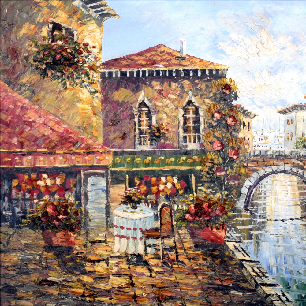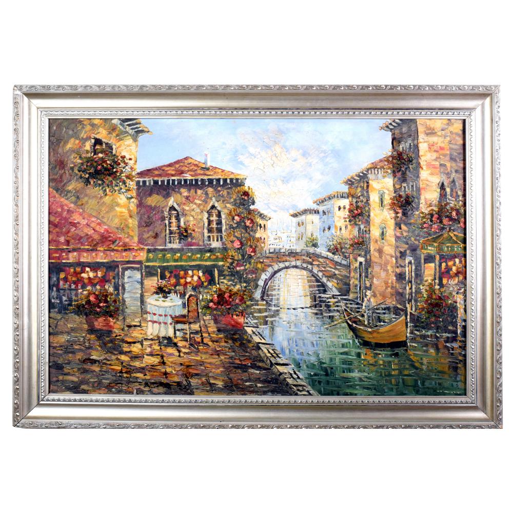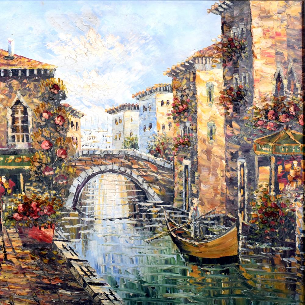 - Handcrafted oil painting on vintage canvas captures a serene Venice City landscape