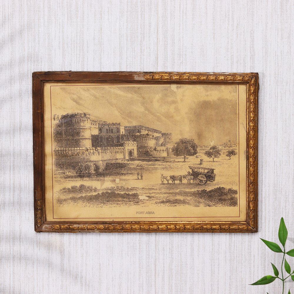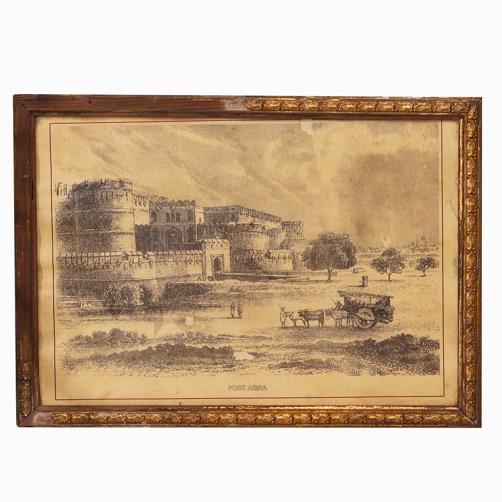 Embark on a journey through time with this remarkable vintage charcoal painting of the iconic Fort Agra. Crafted during the colonial era, this masterpiece captures the fort's timeless elegance and architectural grandeur, inviting you to explore the rich history that has unfolded within its walls. This captivating painting is more than just a work of art – it's a portal to a bygone era, where the echoes of history still reverberate. Imagine the stories that these charcoal strokes could tell, the battles that were fought, and the lives that were forever changed within the fort's hallowed halls. Display this stunning piece in your home or office, and let it inspire your imagination and appreciation for India's rich cultural heritage. Whether you're a history enthusiast, an art connoisseur, or simply someone who appreciates the beauty of the past, this vintage charcoal painting of Fort Agra is a must-have addition to your collection. Immerse yourself in the timeless allure of this iconic Indian landmark and let it transport you to a world of regal splendor and enduring legacy.