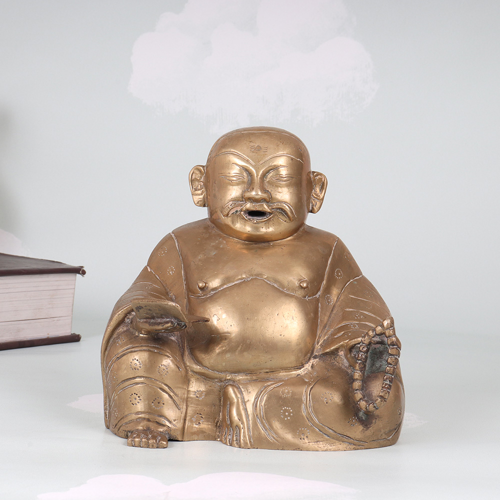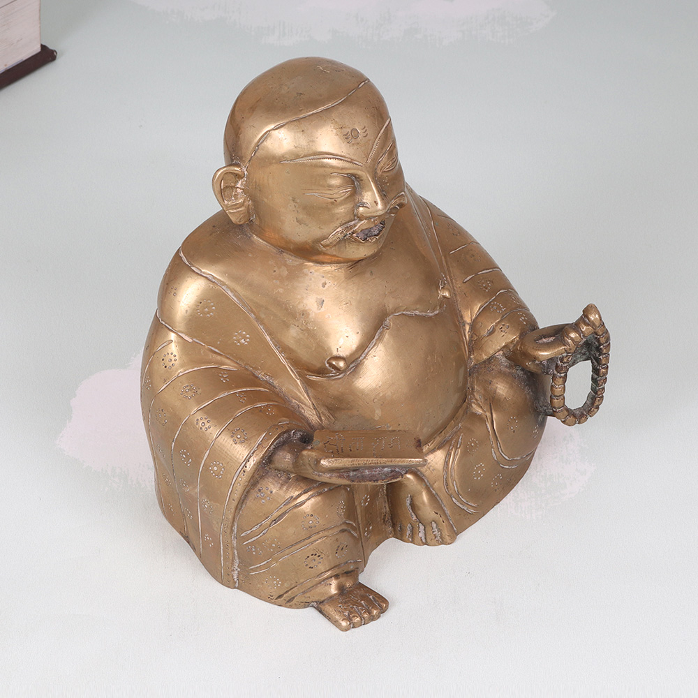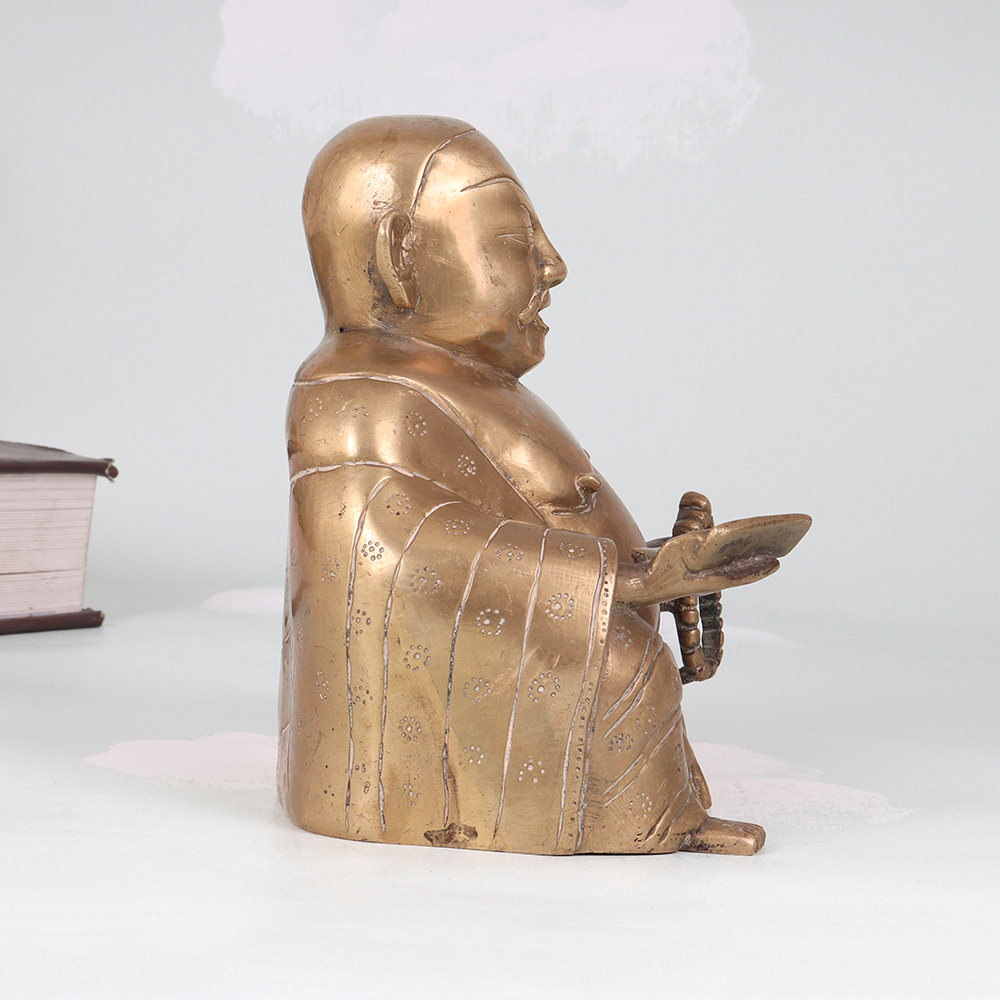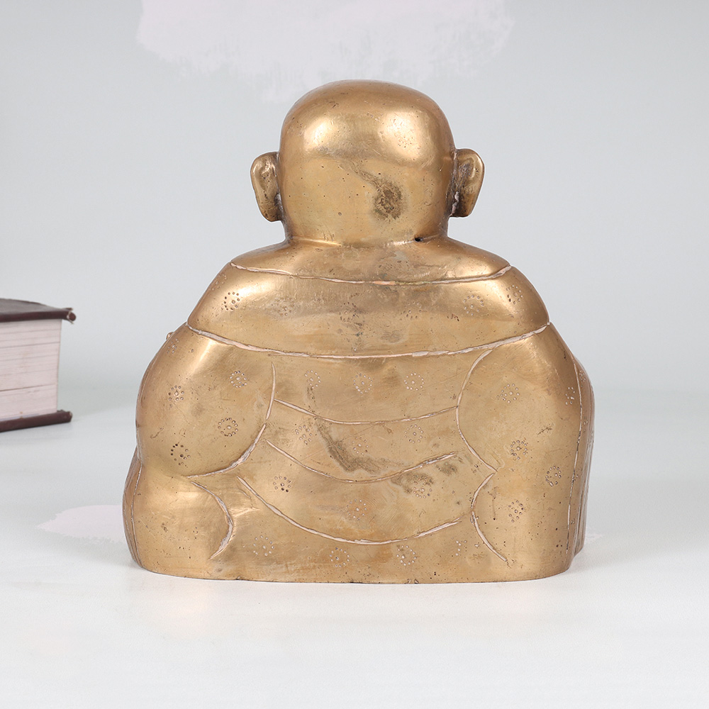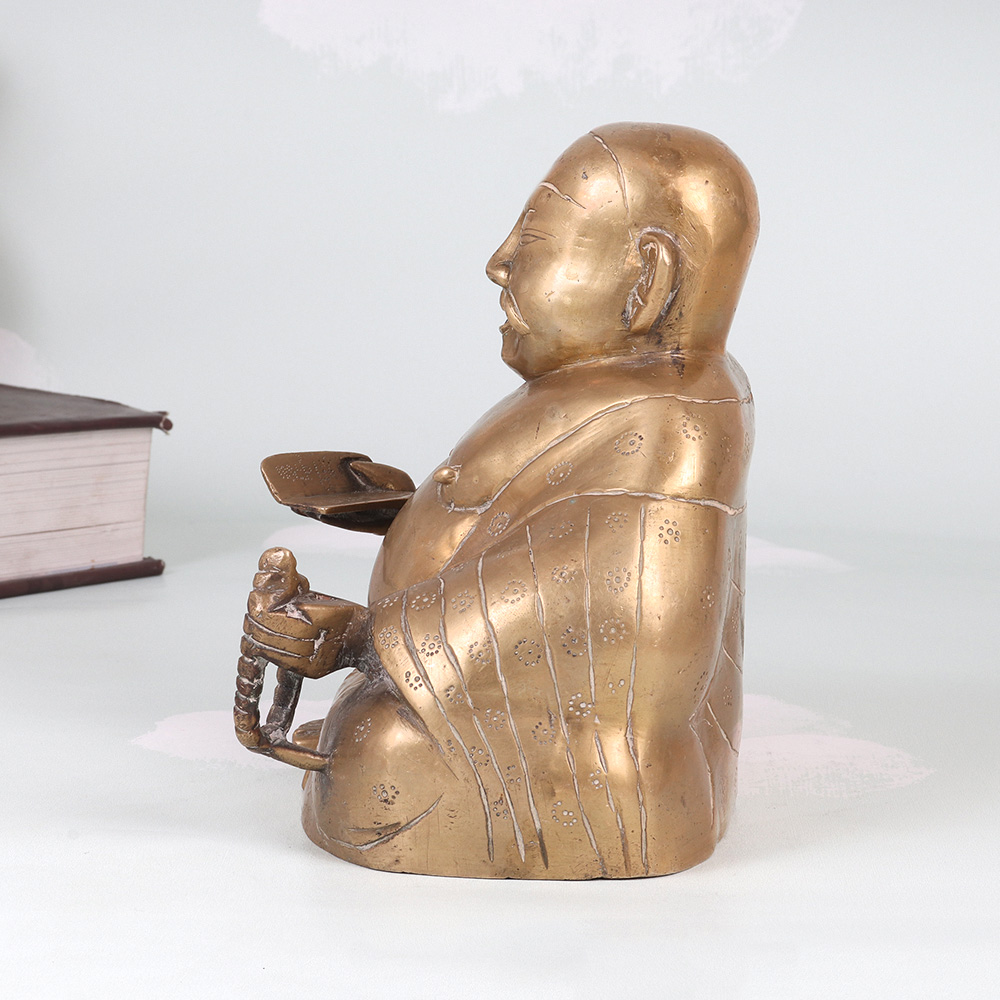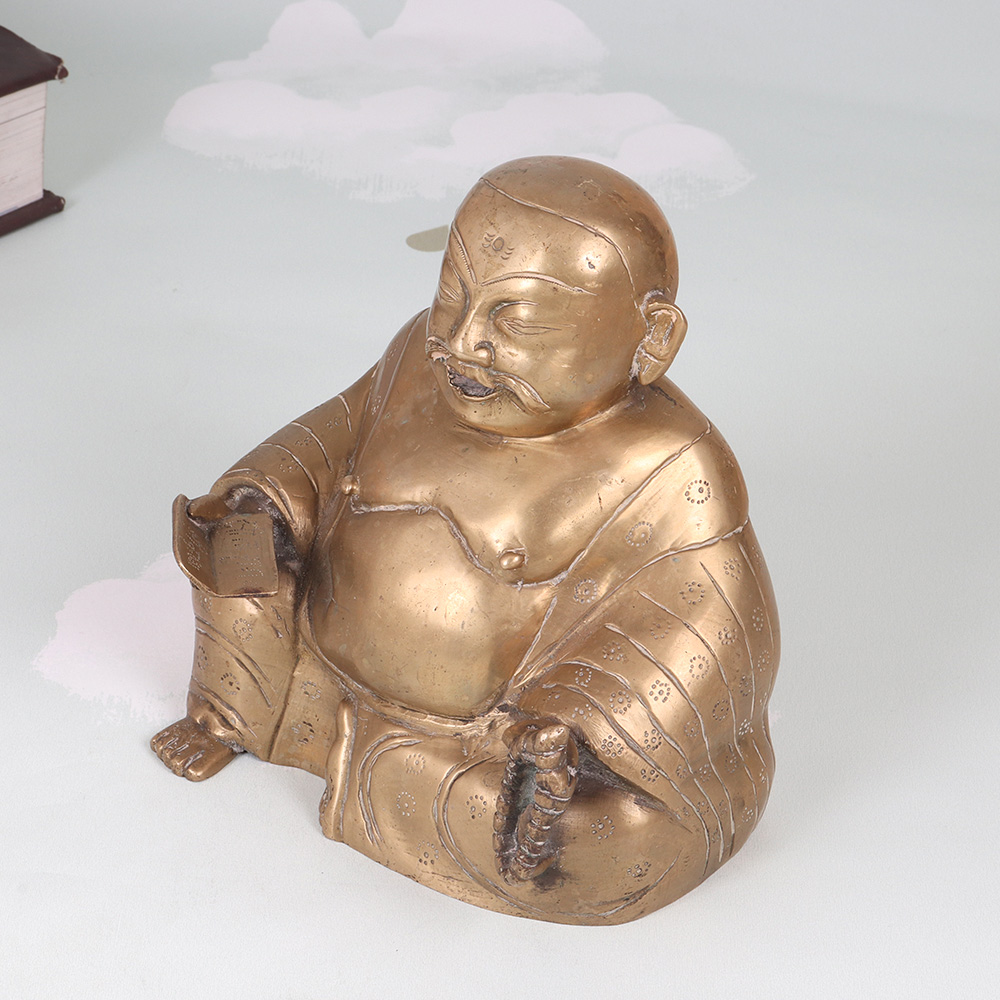 Invite the joy and prosperity of the Laughing Buddha into your home with this stunning vintage brass statue. Radiating positive energy, this captivating piece commands attention with its intricate detailing and joyful expression. In Chinese culture, the Laughing Buddha is revered as an embodiment of contentment, generosity, and spiritual enlightenment. Placing this magnificent statue in your home is said to attract wealth, luck, and laughter, infusing your surroundings with his joyful energy. Whether you're looking to elevate your living room, office, or any other space, this vintage brass Laughing Buddha is a timeless work of art that will captivate all who see it. Its impressive size and exquisite craftsmanship make it a conversation piece that guests will admire. Display it proudly to bask in the Buddha's blessings of abundance and well-being.
