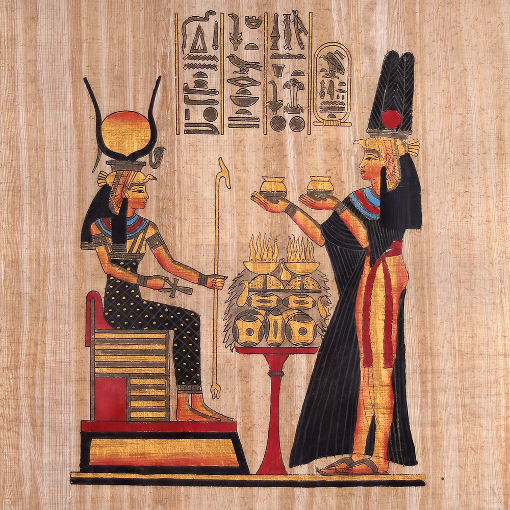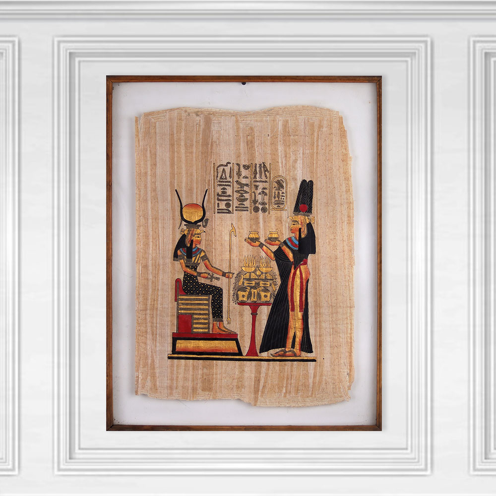 - Handcrafted cloth wall hanging depicting iconic Egyptian artwork