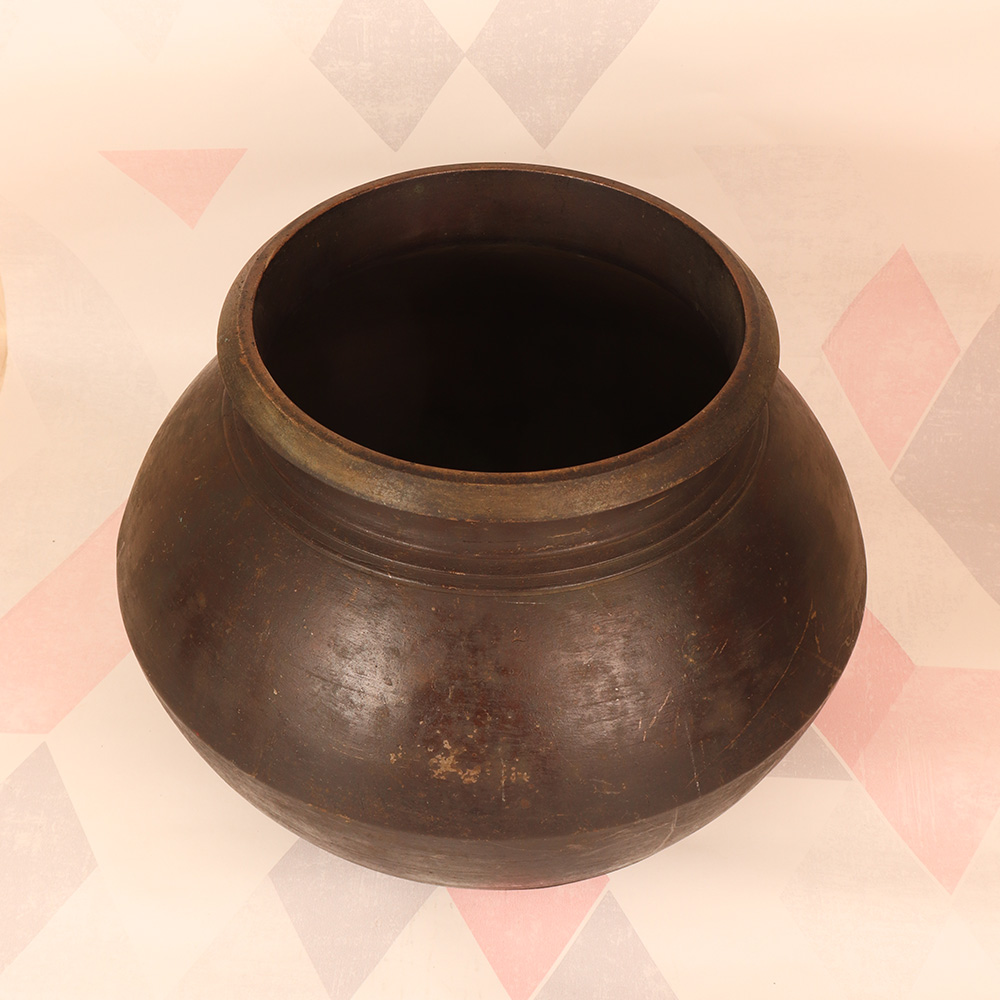 Elevate your living space with the captivating allure of this exquisite vintage brass pot, crafted by skilled artisans in the renowned South Indian art tradition. Showcasing the region's renowned metalworking techniques, this planter is a testament to the enduring beauty of traditional craftsmanship. Featuring a plain brown finish that exudes timeless elegance, this brass pot seamlessly complements a wide range of decor styles, from modern minimalist to rustic chic. Whether you choose to display it as a standalone accent piece or use it to highlight your favorite greenery, this versatile planter will add depth and character to your indoor or outdoor living space. Invest in a piece that will be cherished for generations to come. This vintage brass pot is not just a container for your plants – it's a work of art that celebrates the rich cultural heritage of South India, a true heirloom that will inspire you to create a space that reflects your unique style and appreciation for the enduring beauty of traditional craftsmanship.
