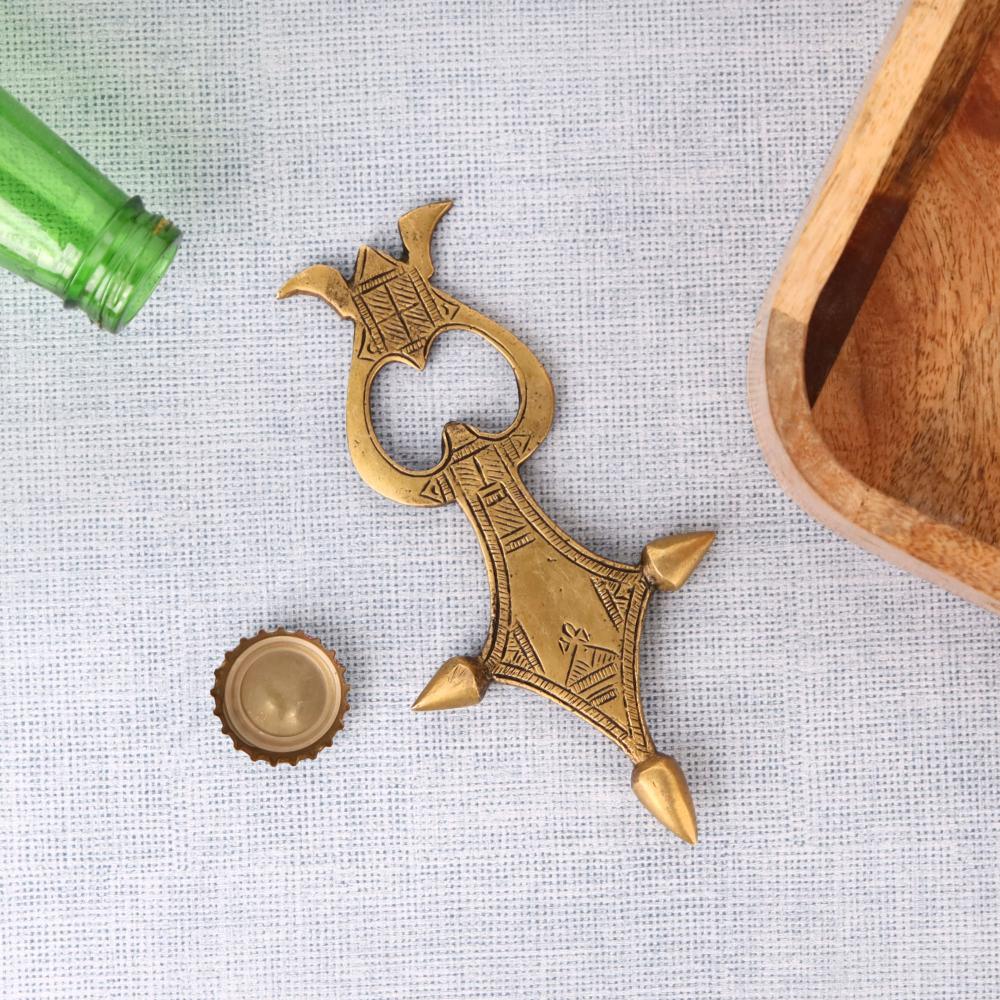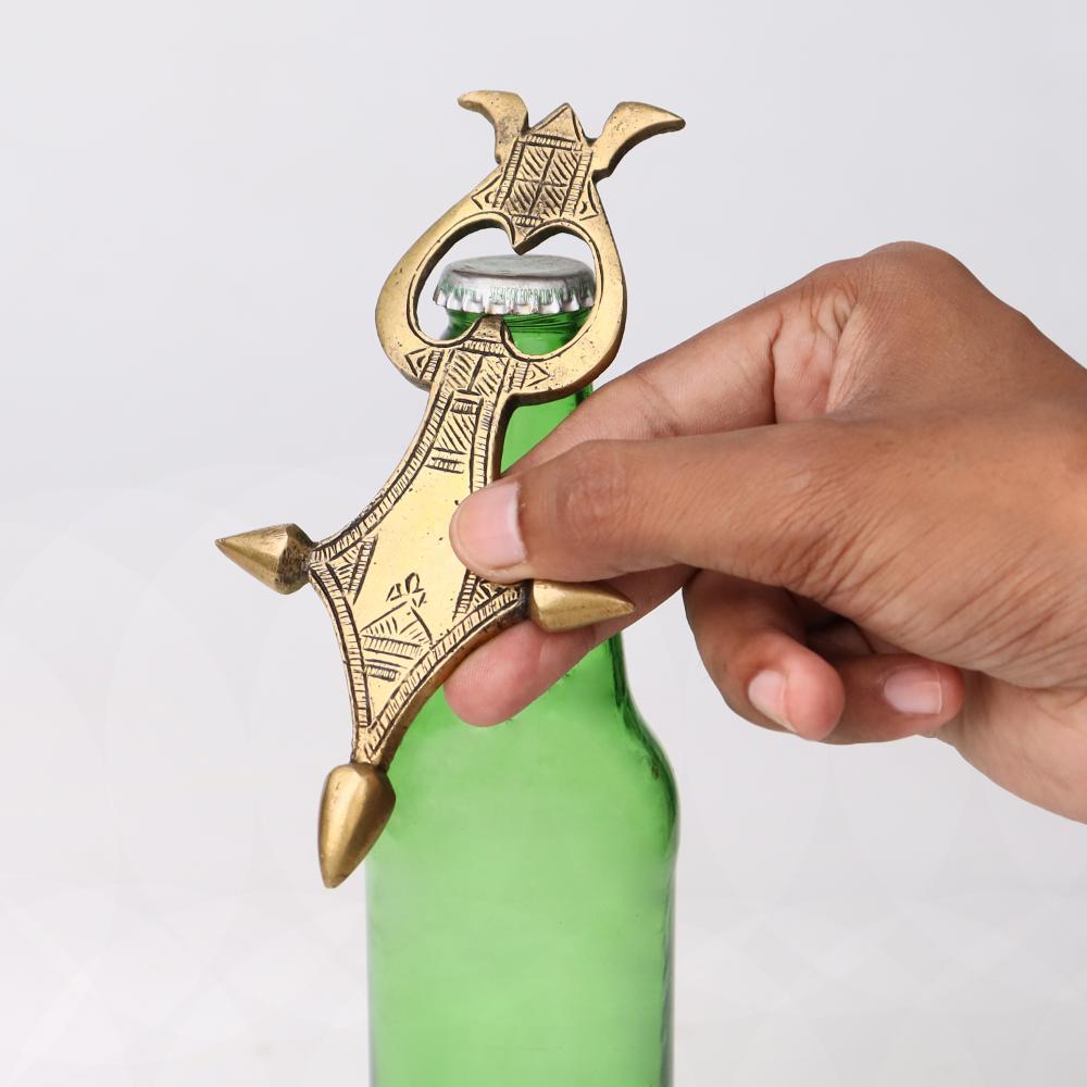Made of solid brass functional and decorative piece unique piece this vintage design bottle opener with a goldenbrassfinish is perfect for the kitchen or any bar area. Locate one in your home or outside for parties.