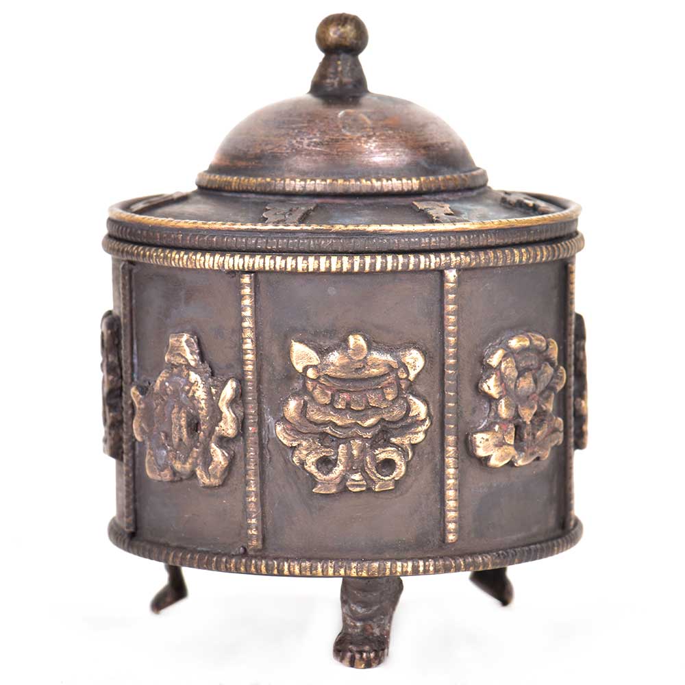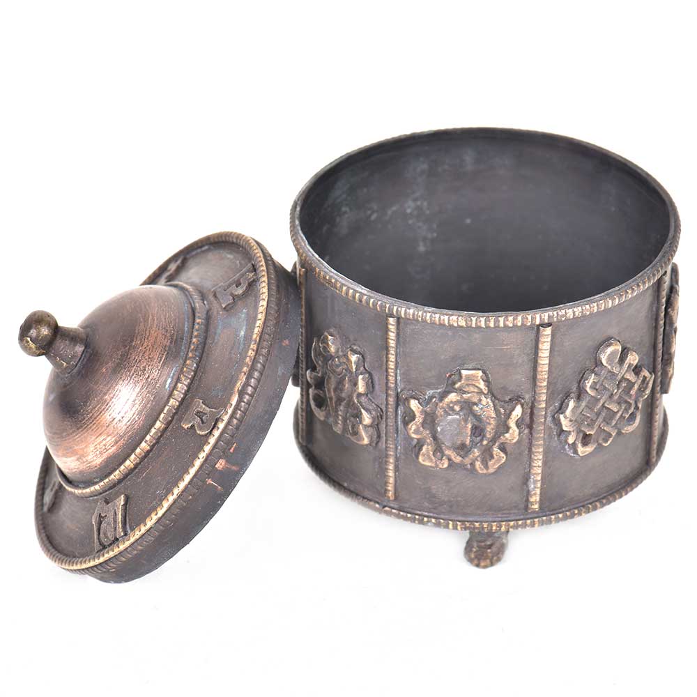 Handcrafted a very traditional looking brass storage design with embossed pattern with a lid that keeps your valuables safe.It can also be used as a prayer box and an excellent gifting option to friends and realtives .