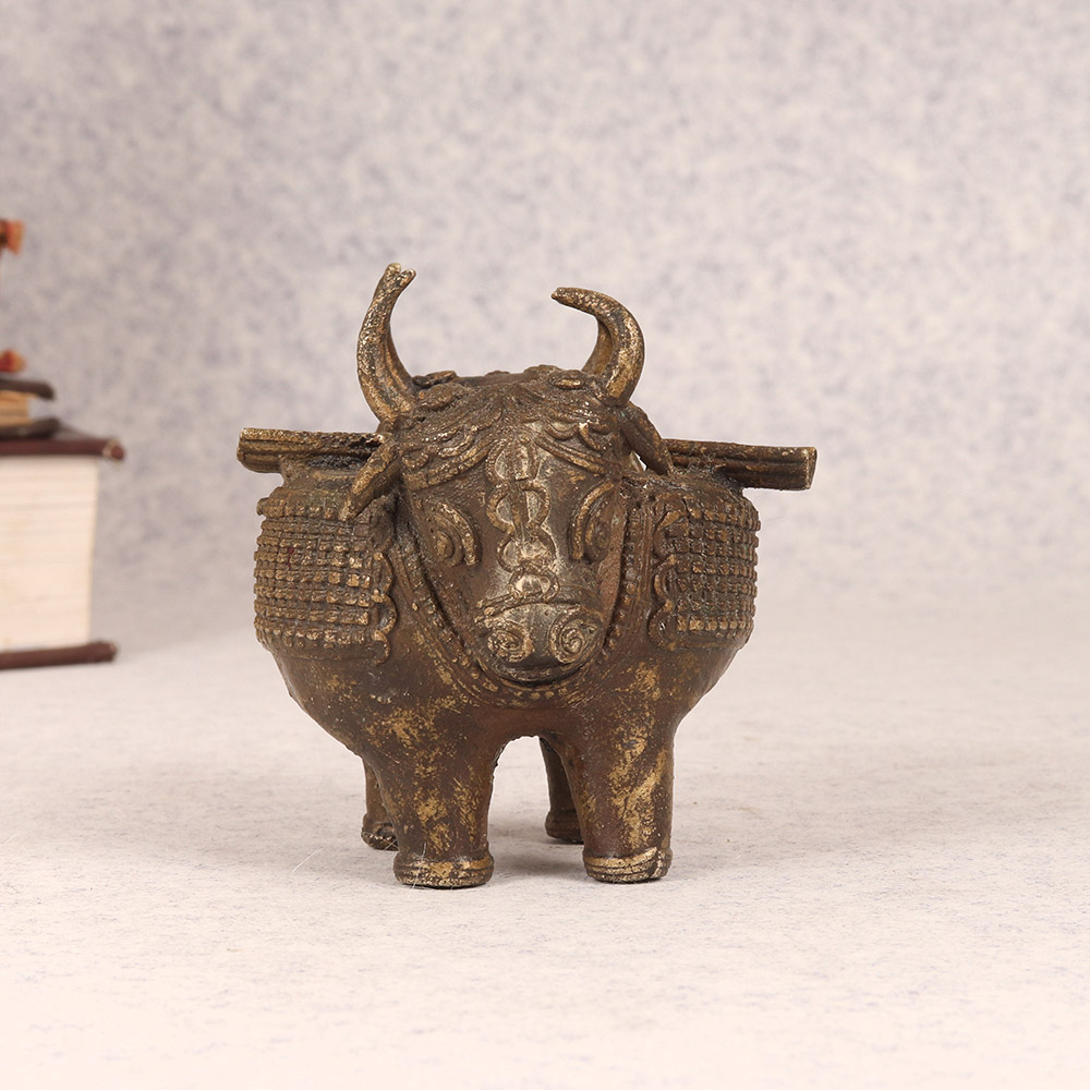 Elevate your smoking experience with this captivating Vintage Brass Ashtray. Crafted with meticulous attention to detail, this ashtray is a true work of art that will transform your space. This vintage brass ashtray is more than just a functional accessory - it's a statement piece that will elevate your personal style. The intricate tribal art design of the bull's head commands attention, while the solid brass construction ensures it will withstand the test of time. Whether you're a cigar aficionado or simply appreciate fine craftsmanship, this ashtray is sure to become a cherished addition to your home. Imagine the compliments you'll receive as guests admire the stunning visual appeal of this ashtray. It's the perfect blend of form and function, allowing you to indulge in your smoking rituals with a touch of vintage flair. Elevate your everyday moments and create a sophisticated ambiance with this captivating Vintage Brass Ashtray.