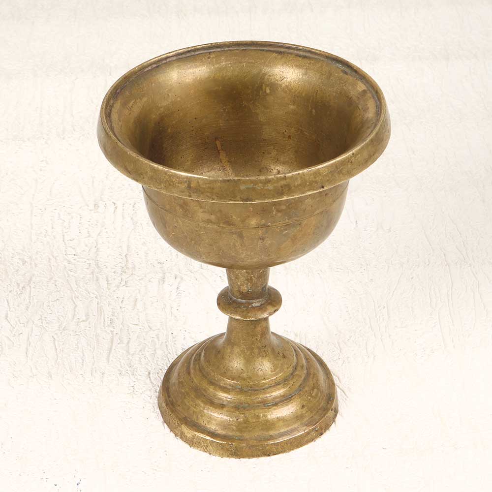 - Aged brass cup and stand with vintage patina