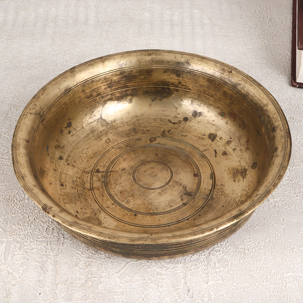 Buy an Antique Brass Bowl online which is a versatile piece of artistry that seamlessly blends functionality with timeless aesthetics. Handmade by highly skilled and experienced Indian artisans, this magnificent bowl boasts a rich antique brown finish, adding an air of vintage charm to any space it graces. Meticulously fashioned from high-quality brass, it is not merely a flower pot but a divine vessel fit for gods, making it a perfect addition to temples for ceremonial rituals. This versatile piece transcends traditional boundaries, finding a place of pride in homes, offices, restaurants, hotels, or cafes as a statement decor item. Its elegant design and warm patina make it a captivating addition to any setting, inviting admiration from guests and patrons alike. As a thoughtful gift, this brass bowl is a symbol of artistry and spirituality, ideal for presenting to your family, friends or relatives during special, festive, or auspicious occasions.