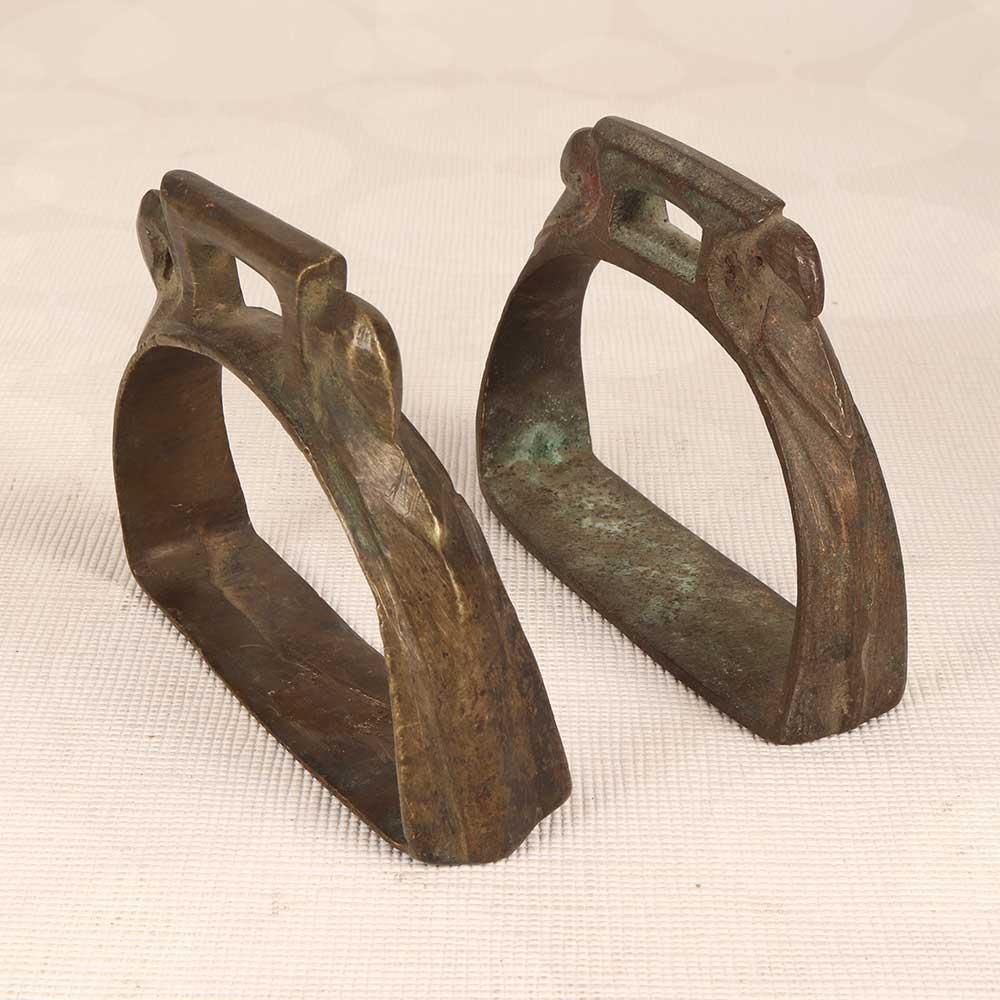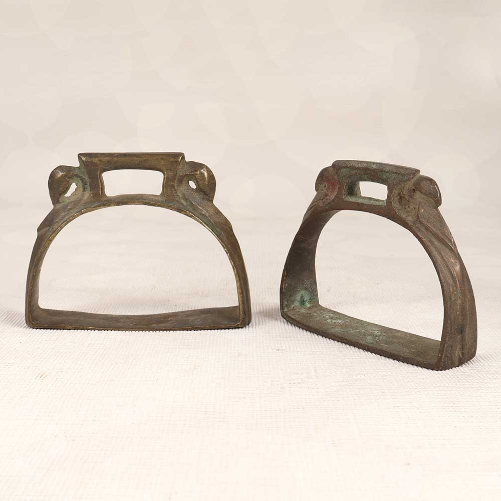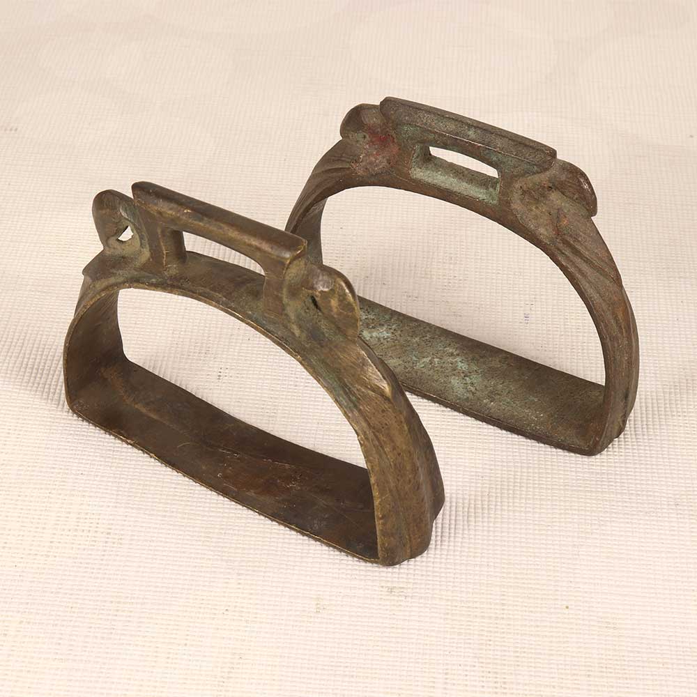 Elevate your rides with a touch of vintage flair. These striking brass horse stirrups date back to the early 20th century and recall the golden age of equestrian style. Bring an air of sophistication to your daily rides with these vintage stirrups. The timeless oval design and warm brass finish give a refined, heritage look while the wrapped treads provide needed stability. Perfect for equestrians who want to ride in style. With their durability and eye-catching finish, these brass beauties will be your trusted companions for years of memorable rides. Add a touch of history and elegance to your saddle with these striking vintage brass stirrups today.