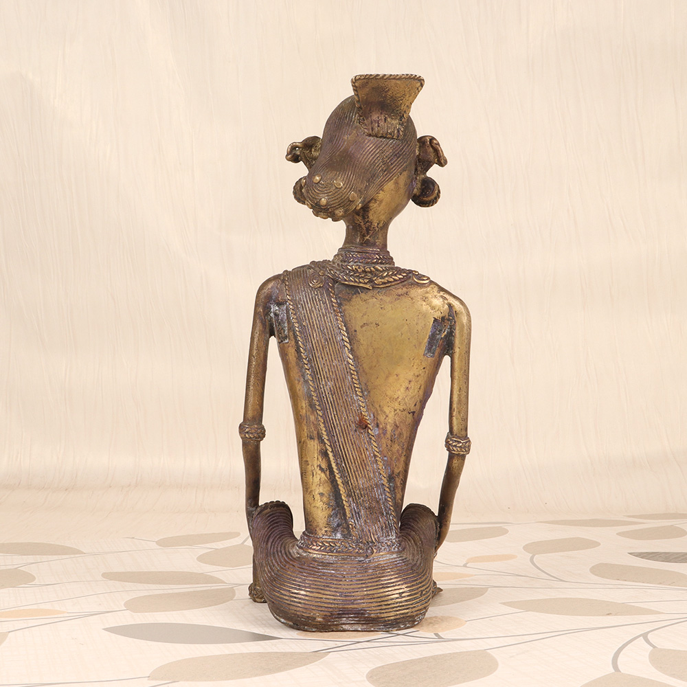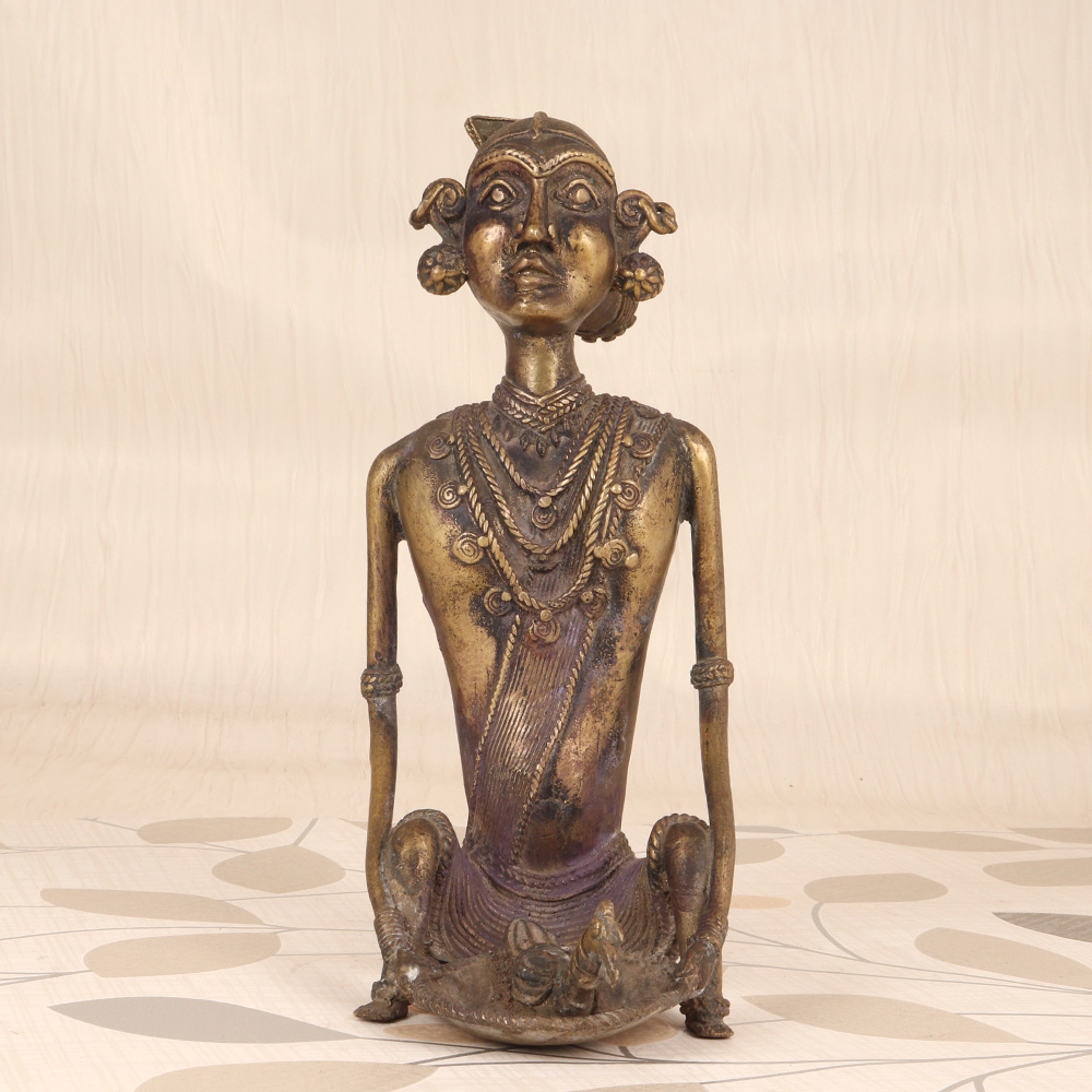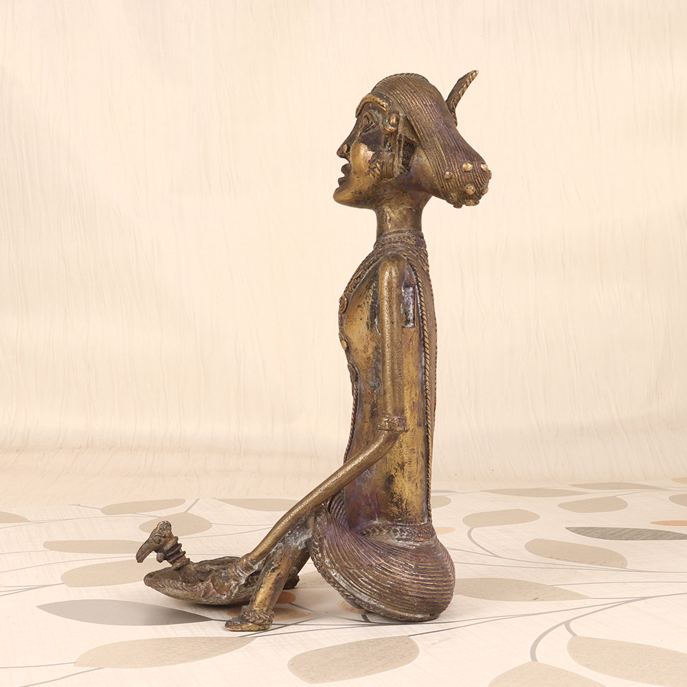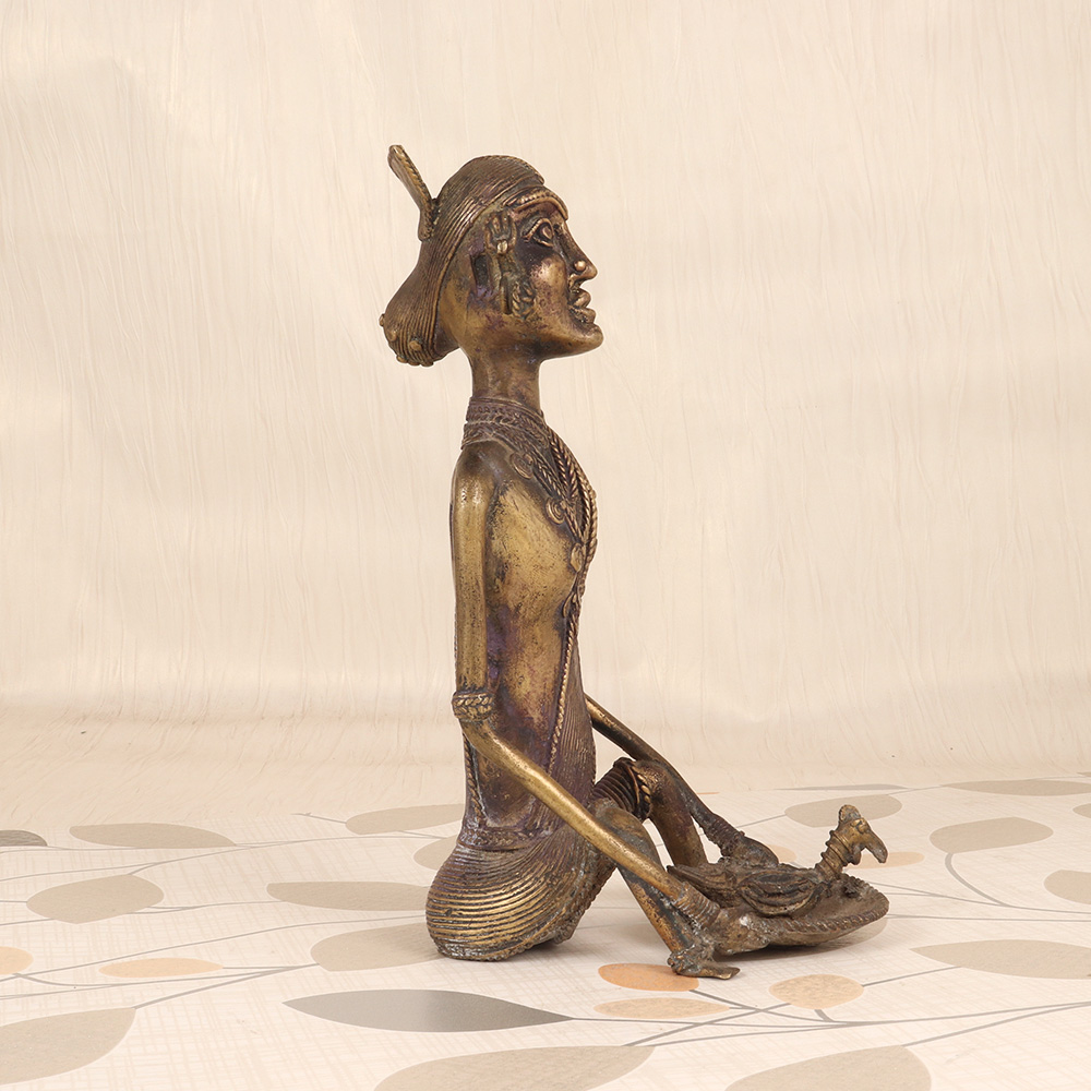 Discover the timeless beauty and cultural richness of the East with this Vintage Brass Tribal Art Lady Sitting with Bird from Bengal. This exquisite sculpture is a true masterpiece, blending intricate craftsmanship with the captivating essence of ancient tribal art. Elevate your décor and infuse your space with the soulful energy of Bengal by proudly displaying this stunning brass sculpture. The serene, meditative pose of the lady figure and the graceful presence of the bird create a sense of tranquility and cultural significance. Whether you're decorating a living room, office, or meditation space, this tribal art piece will instantly become a captivating focal point. More than just a decorative accent, this vintage brass sculpture is a celebration of the vibrant artistic traditions of Bengal. It makes a stunning conversation starter and can inspire moments of reflection on the wisdom and artistry of ancient cultures. Bring the beauty and elegance of the East into your home and let this remarkable work of art transport you to a world of timeless beauty and cultural richness.