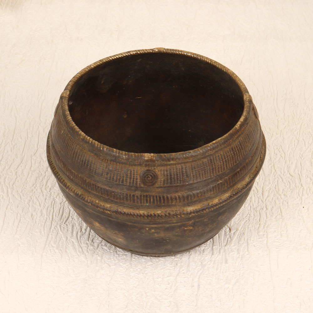 Buy a Vintage Brass Rice Measurement Bowl online and get a hassle free delivery at your doorstep. Handmade by highly skilled artisans from the enchanting region of Odisha, this bowl is a testament to the timeless artistry and craftsmanship passed down through generations. Fashioned from high-quality brass, the bowl boasts an antique brown finish that exudes an aura of authenticity. The intricate engravings on its surface tell stories of tradition and lend a unique character to this piece. Originally used for measuring rice in traditional households, this vintage bowl now serves as a captivating decorative item that can enhance the aesthetic appeal of your home, office, restaurant, hotel, or cafe. Given its age and historical significance, we recommend this bowl primarily for decorative purposes. It is a charming addition to any vintage collection, offering a glimpse into India's cultural past. Moreover, it makes for a thoughtful and unique gift for your family, friends or relatives on special, festive, or auspicious occasions, allowing them to cherish the beauty of Indian craftsmanship and history.