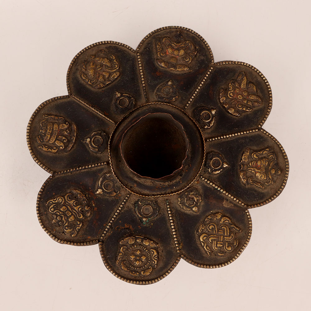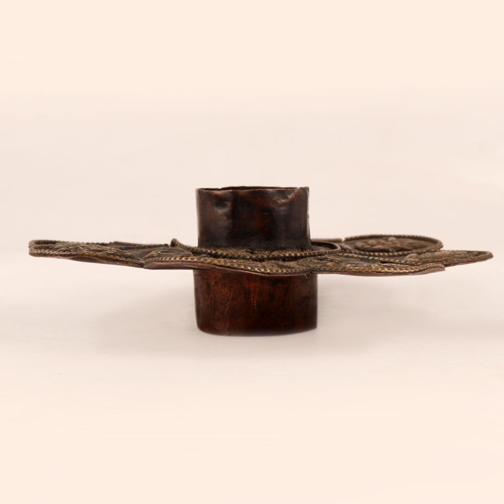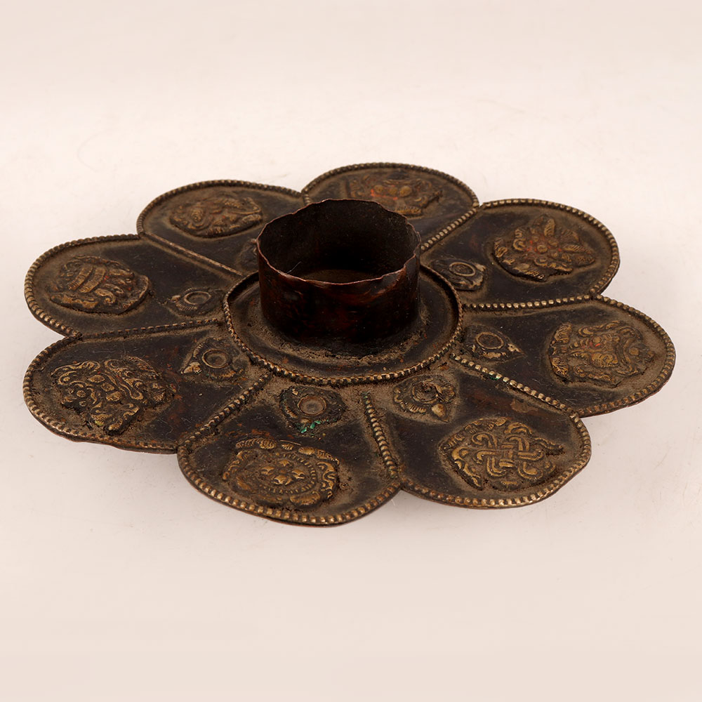 Buy a Copper Incense Burner in Flower Shape online and get a hassle free delivery. Crafted by skilled craftsmen in the timeless tradition of Tibetan art, this incense burner embodies both artistry and spirituality. Its distinctive flower shape, adorned with intricate God symbols engraved into the rich copper surface, evokes a sense of reverence and connection to ancient traditions. The antique brown finish adds an authentic touch, giving it an aura of age-old wisdom. This versatile piece of artistry can find a place in your home, office, restaurant, hotel, cafe, or shop, enhancing the ambiance with its captivating design. Whether in a personal prayer room or as a decorative accent, it radiates an aura of tranquillity and cultural significance. Collectors of vintage treasures will appreciate this incense burner as a valuable addition to their curated collection. Moreover, this incense burner is a thoughtful gift choice for your family, friends or relatives on special, festive, or auspicious occasions.