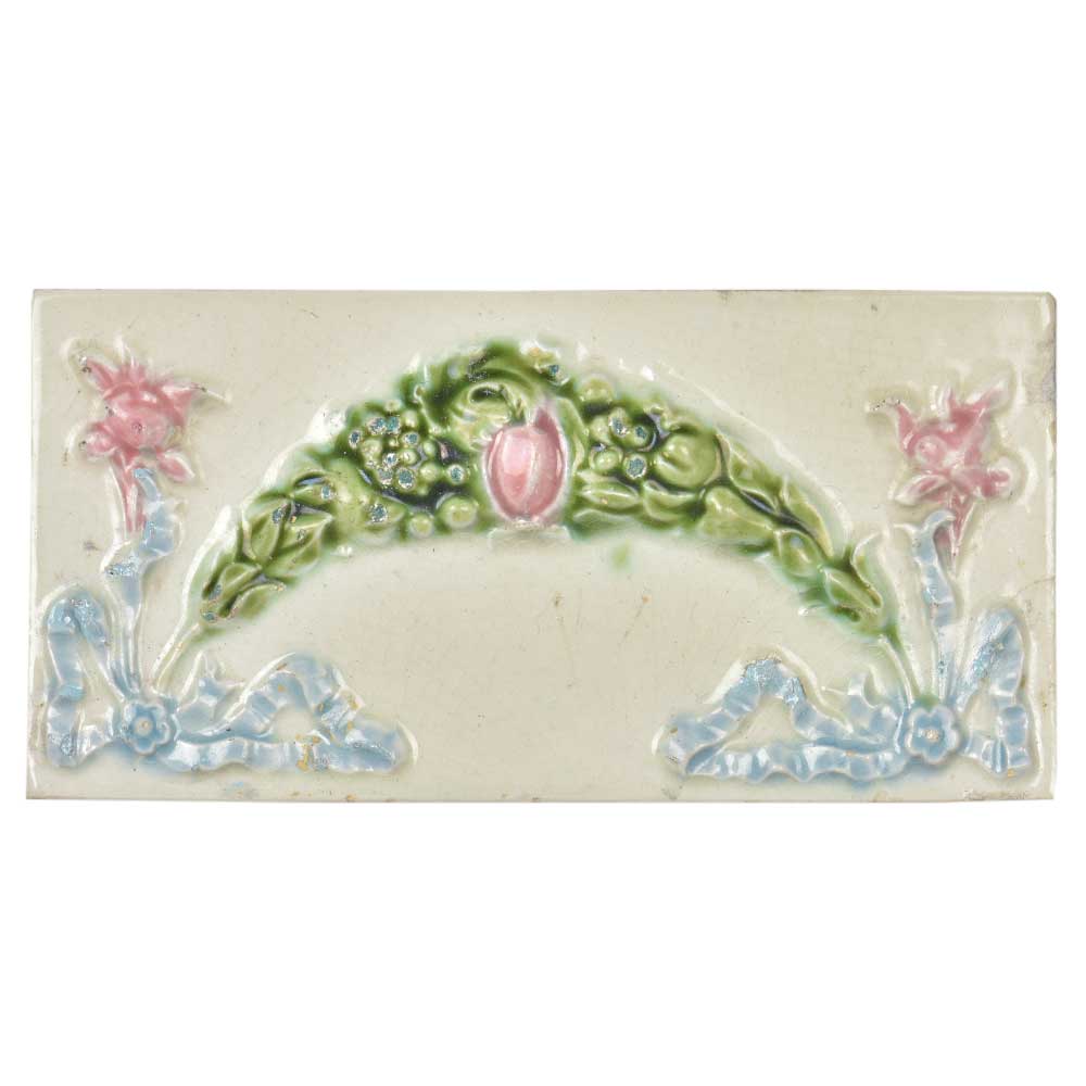 Vintage Ceramic collectible tiles with multi colored floral garland embossed cermic tile with a two pink colored flowers on both ssides is made in white tile . These tiles are used as a home décor item or gifting option. A great Vintage collection.