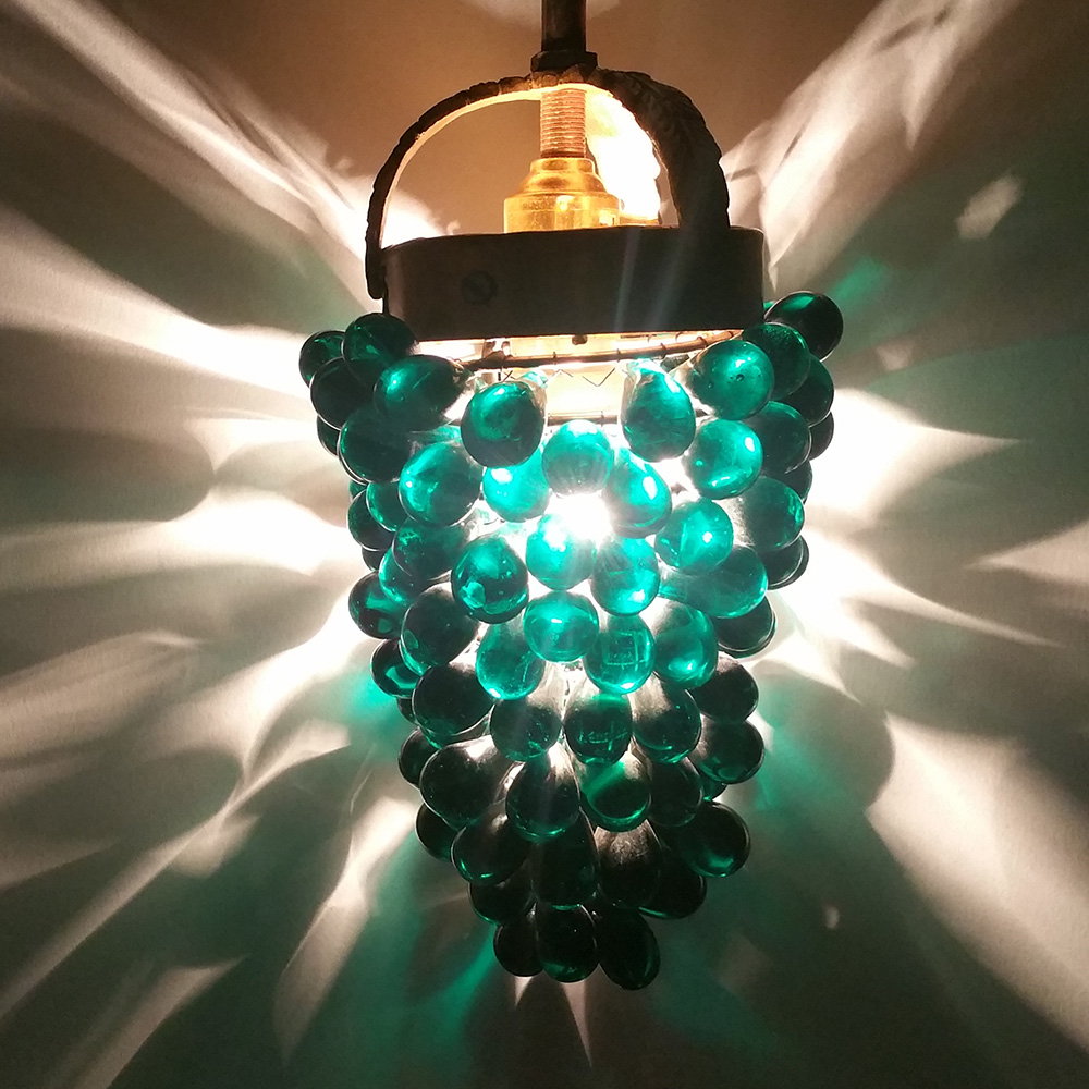 Vintage mid century modern green blue grape hanging lamp. The lamp is unique and allows a great lighting option for any room.