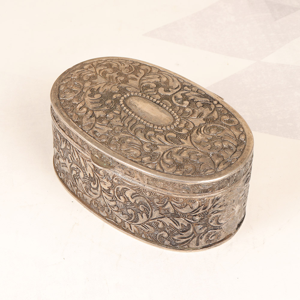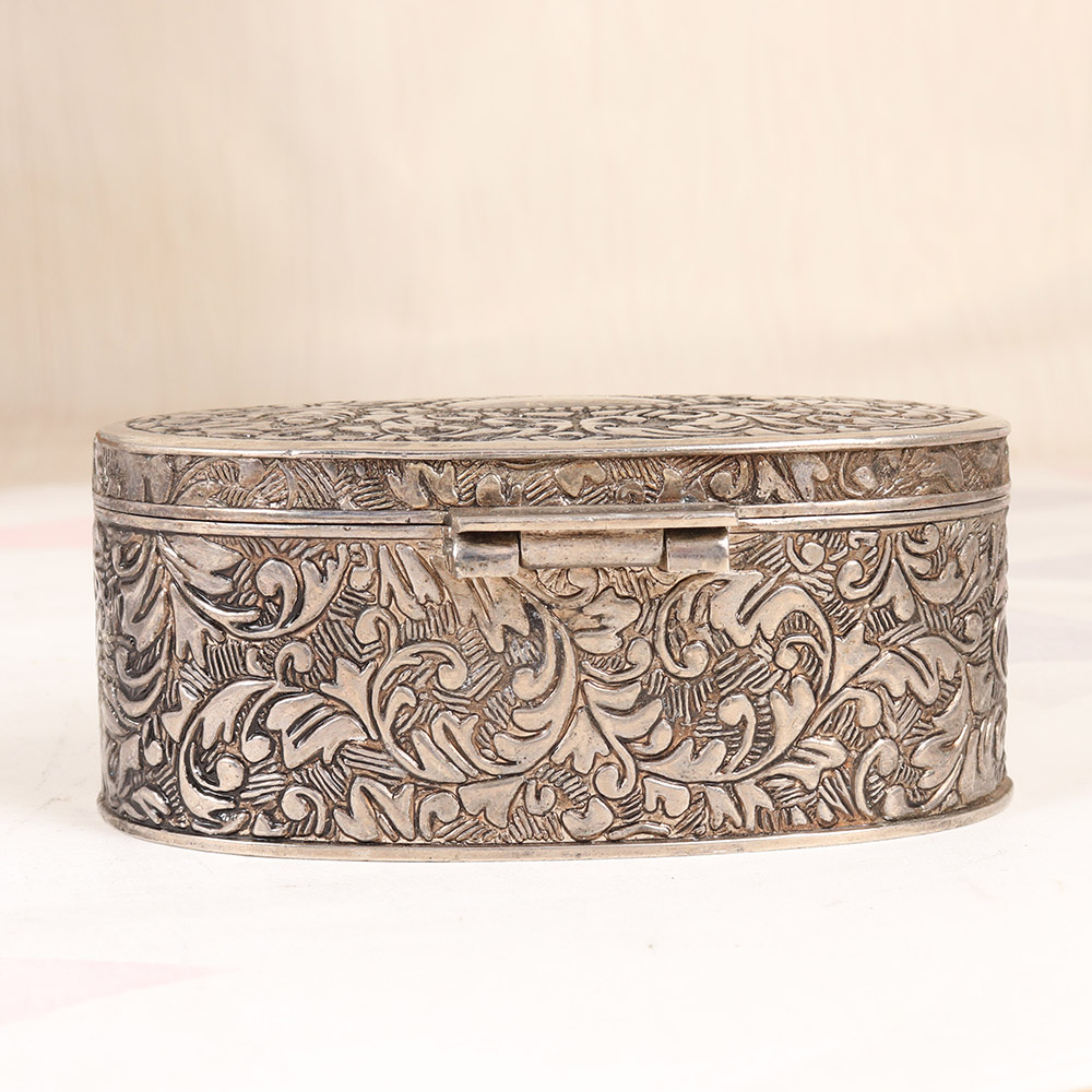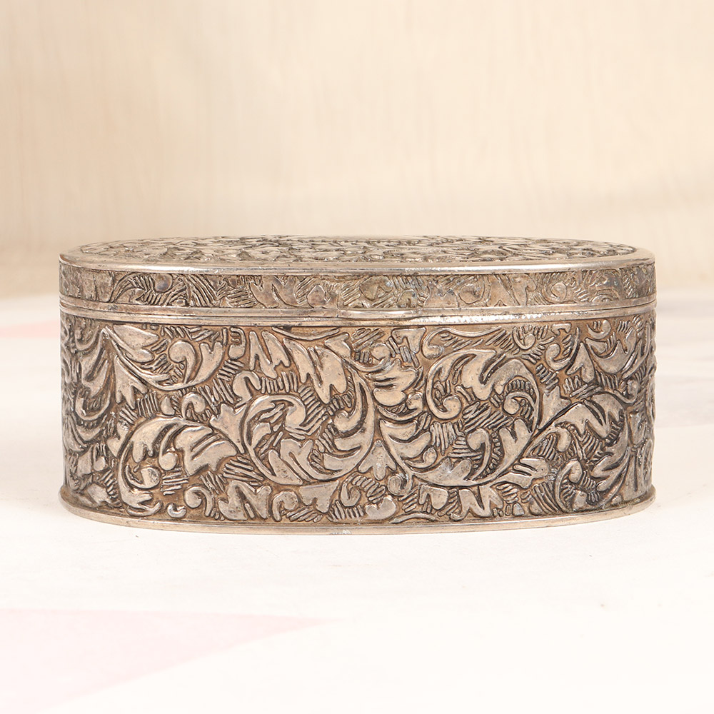Discover the timeless beauty of the past with this exquisite vintage metal oval box. Crafted with the unparalleled skill of English artisans, this captivating piece is a true testament to the enduring artistry of traditional craftsmanship. This vintage metal oval box is more than just a storage solution – it's a window into a bygone era, a celebration of the enduring beauty of traditional artistry. Use it to showcase your prized jewelry, trinkets, or other small valuables, and let it become a cherished piece that sparks conversation and admiration. Whether you're a collector of antiques, a lover of vintage decor, or simply someone who appreciates the beauty of handcrafted objects, this stunning oval box is a must-have addition to your home. Invest in a piece of history and surround yourself with the timeless allure of the past – this captivating box is sure to become a treasured heirloom that will be passed down for generations.