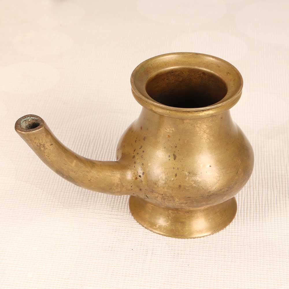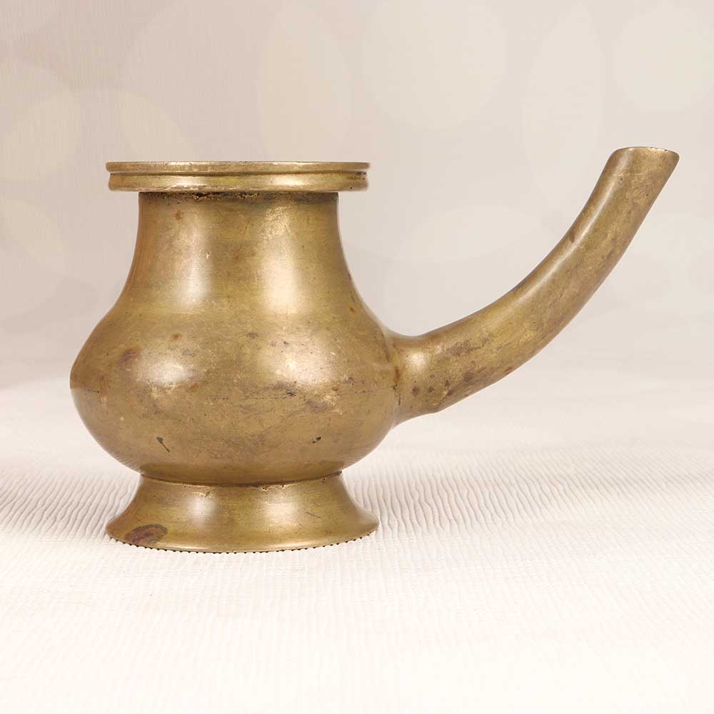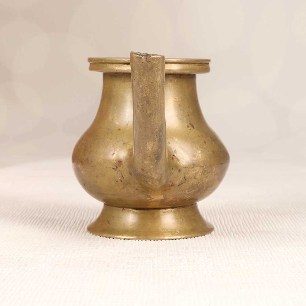 Our antique brass holy water pot with spout allows you to sanctify your space and connect to the divine. This beautiful vessel stores ample holy water for spiritual rituals and prayer. Designed to store and pour one of the most sacred substances for spiritual protection and cleansing. Keep this holy water pot prominently displayed so the divine is always near. Its capacity allows you to keep enough holy water for regular rituals and prayer. Built to last with vintage brass, this pot develops a cherished patina over time. An heirloom quality piece that enhances spiritual traditions. Bring sacredness into your home with this special vessel. Use it to carry on meaningful religious customs, invite in divine energies, and deepen your connection with the holy through ritual and reflection.