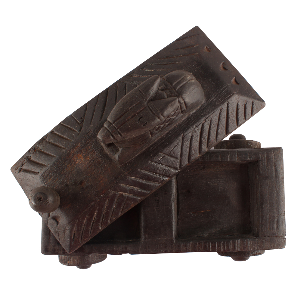 Vintage Handcrafted Old Nandi Wooden Spice Box Highly Collectible. Ceramic Drawers in Wooden Frame. The Spice Boxes are designed with different patterns. These boxes are made using natural wood which does not harm the purity of spices.