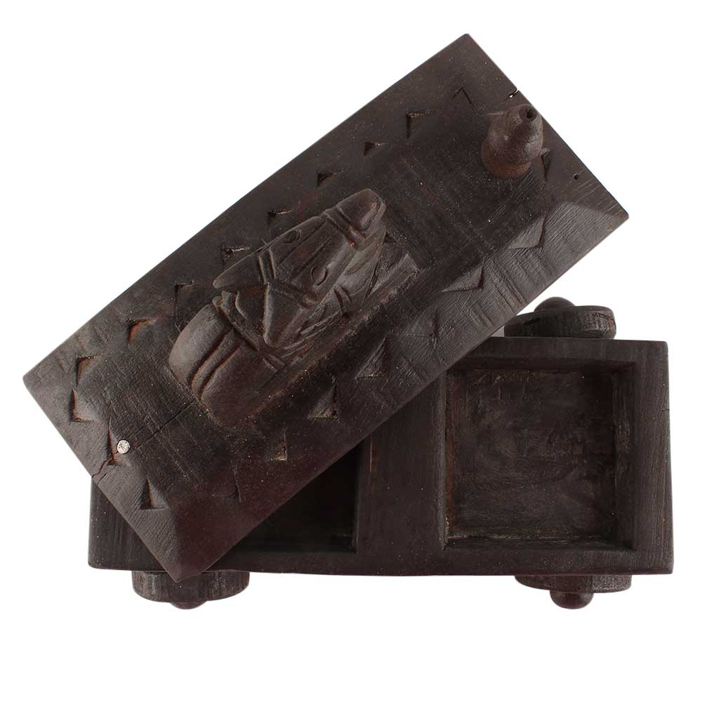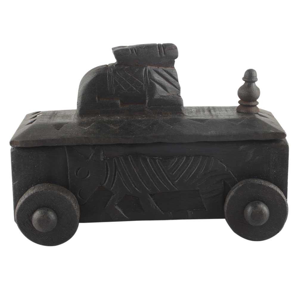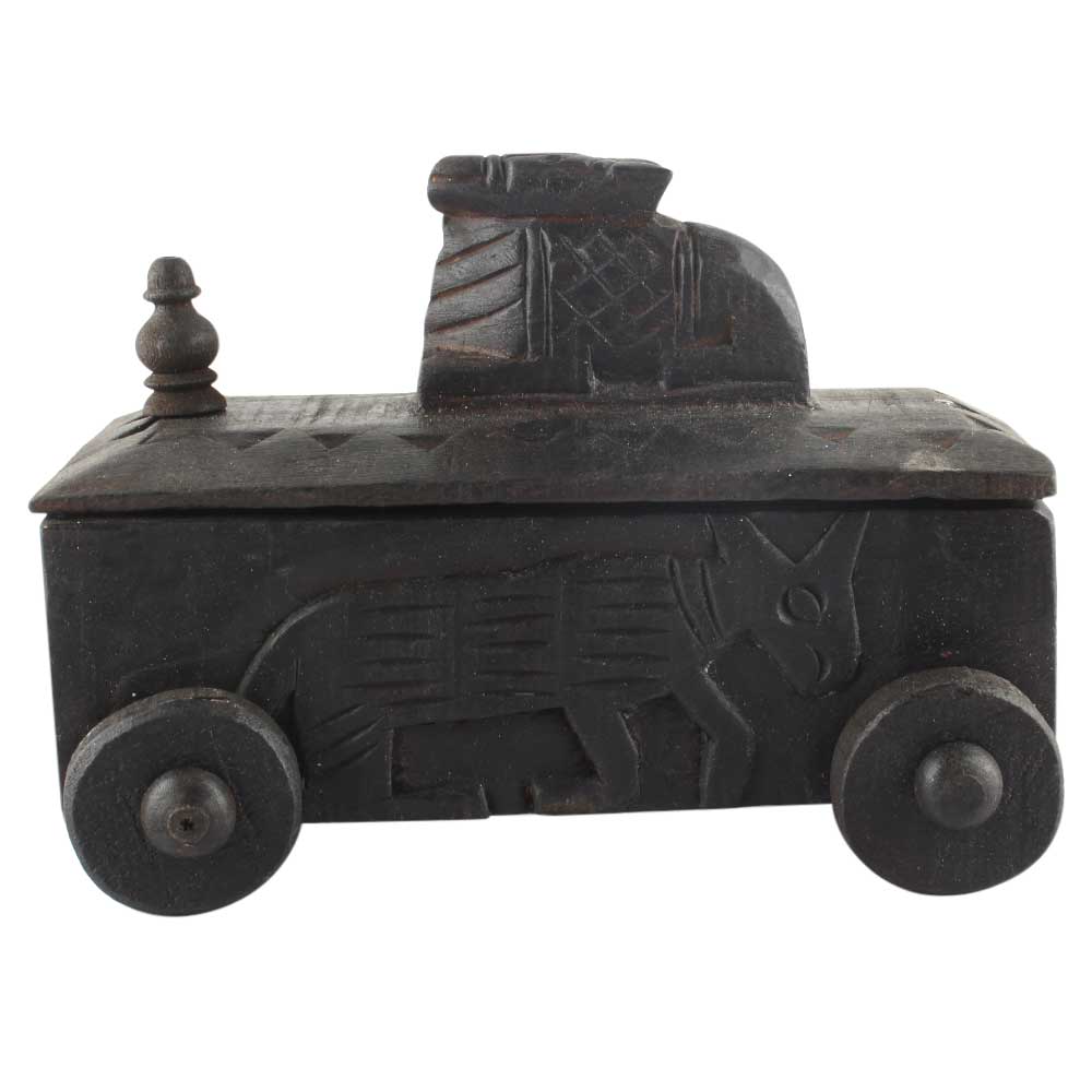 Vintage Handcrafted Old Nandi Wooden Spice Box With Wheels. Ceramic Drawers in Wooden Frame. The Spice Boxes are designed with different patterns. These boxes are made using natural wood which does not harm the purity of spices.