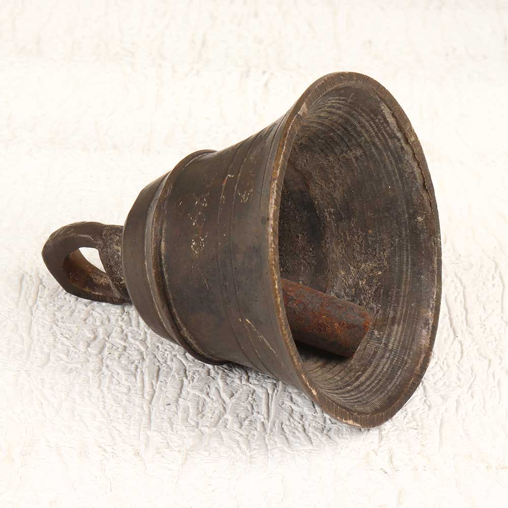 Let the soothing tones of this vintage bell metal temple bell fill your home with peace and tranquility. This beautiful handcrafted bell features a traditional plain design in an earthy brown finish, originating from the Himachal region of India. The rich resonant sound of this bell creates a calming ambiance, perfect for meditation, yoga, or simply enjoying a quiet moment. Ring it gently to focus your mind and relieve stress. With each ring, feel the worries of the day fade away. This special bell is ideal for anyone looking to add a spiritual touch to their home decor. The vintage styling provides a meaningful reminder to be mindful and present. Let this bell keep you grounded and enhance your daily rituals with its heavenly tones.