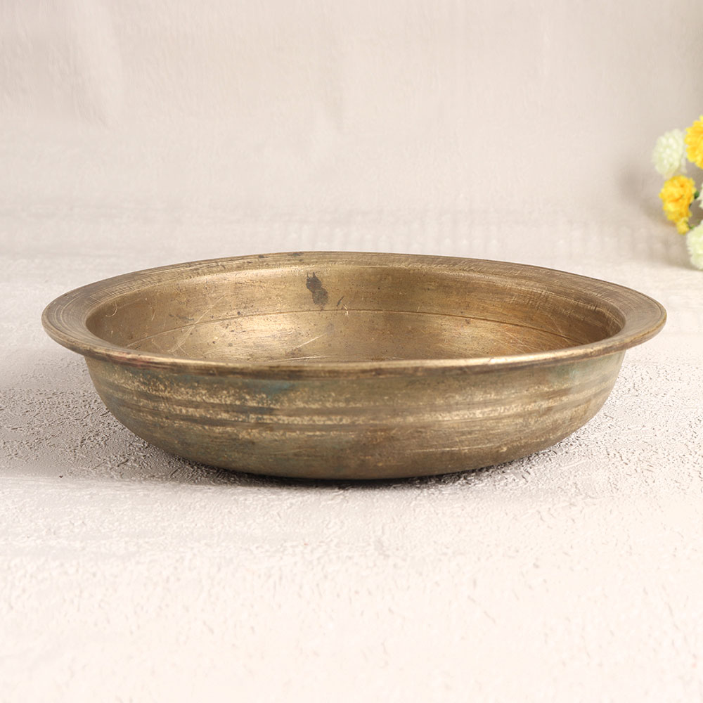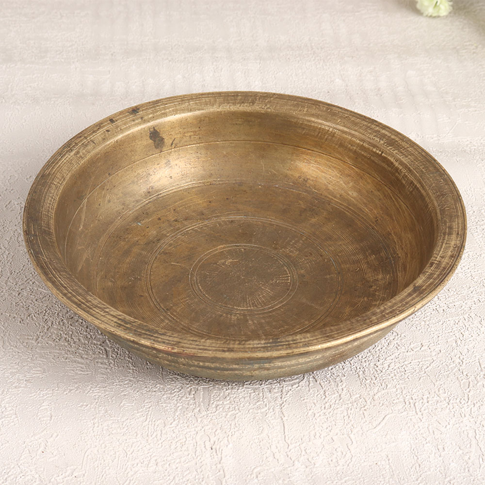 A vintage brass bowl that transcends utility to become a symbol of artistry and tradition. Crafted by highly skilled and experienced Indian artisans, this piece boasts an antique brown finish that exudes a sense of history and charm. This versatile treasure is initially designed as a god bathtub and can find its place in your home, office, hotel, cafe, shop, restaurant, or prayer room. Its multifaceted functionality extends to becoming a striking focal point for flower decoration. Embrace this bowl as a prized addition to your vintage collection, perfect for showcasing at exhibitions and curating a captivating narrative of heritage. Beyond personal enjoyment, this brass bowl makes for a thoughtful gift to your family, friends or relatives on special, festive, or auspicious occasions. Whether you're celebrating a wedding, housewarming, or any milestone event, this piece speaks volumes about your appreciation for tradition, craftsmanship, and timeless elegance.