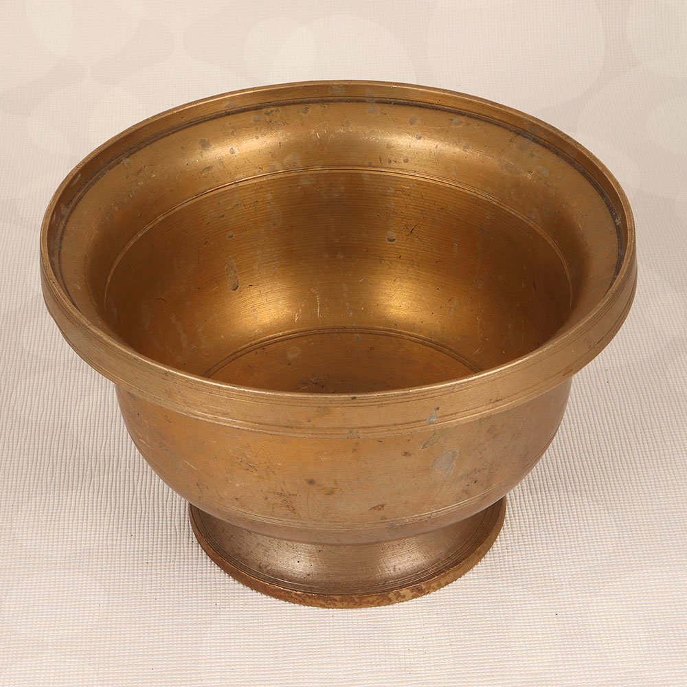 Enhance your living space with the timeless allure of our Vintage Brass Pot that is a masterpiece crafted by skilled Indian artisans in the rich tradition of South Indian Art. This exquisite pot boasts a captivating antique brown finish, adding a touch of old-world charm and sophistication to any environment. Handmade with precision and passion, this pot is constructed from high-quality brass, ensuring durability and a lustrous aesthetic. Its versatile design allows it to seamlessly blend into diverse settings, whether at home, in the office, a restaurant, hotel, or cafe. Transform it into an indoor flower pot, breathing life into your surroundings with the elegance of nature. A true collector's item, this vintage brass pot is a splendid addition to any antique enthusiast's repertoire. Its cultural richness and aesthetic appeal make it a thoughtful and unique gift for your family, friends or relatives on special, festive, or auspicious occasions.