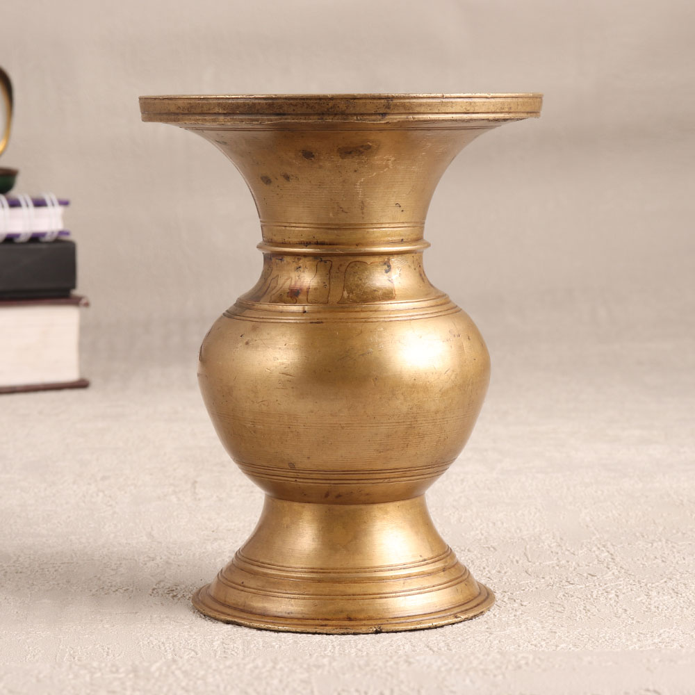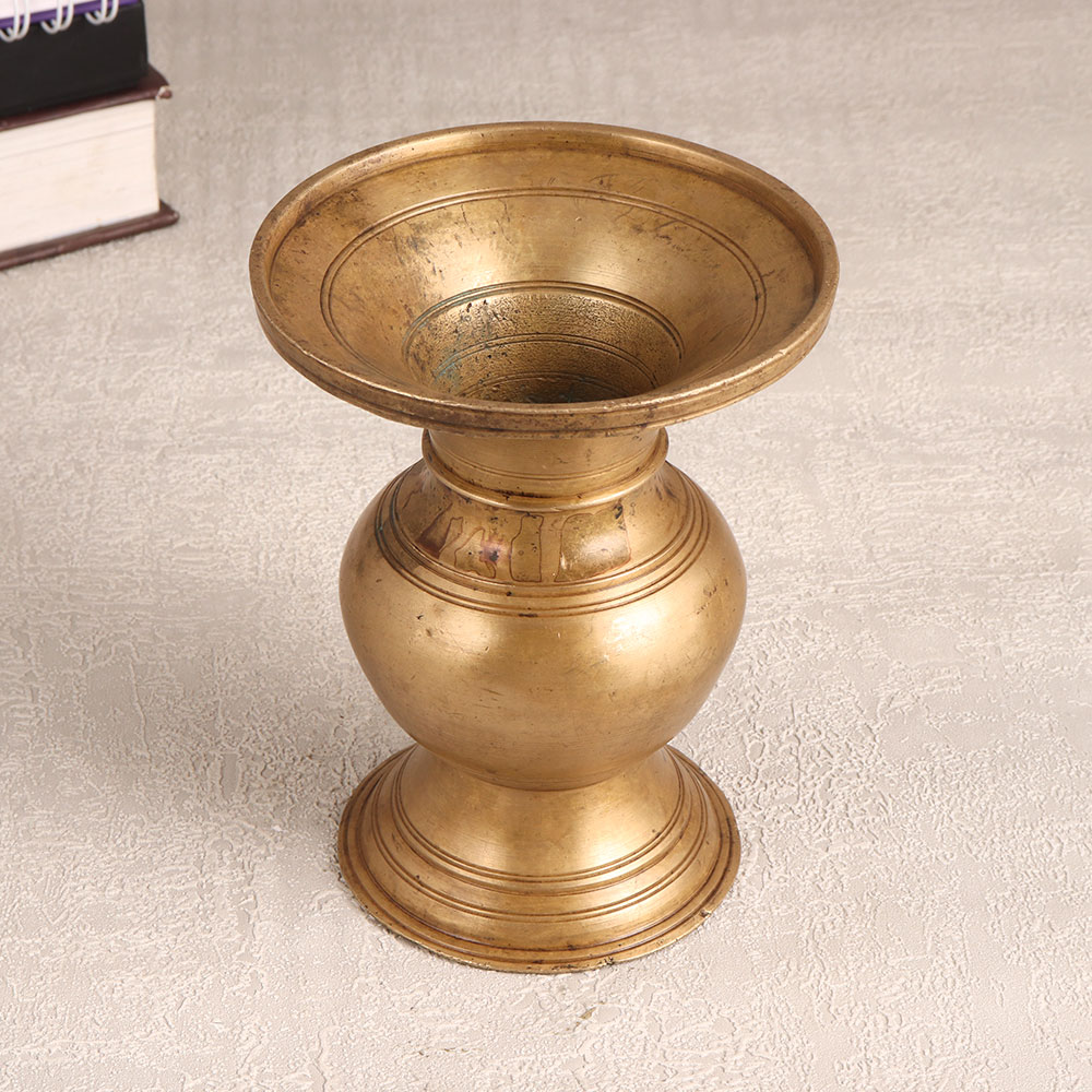 Buy a Vintage Brass Holy Pot online that is a masterpiece of craftsmanship in antique brown finish. Handcrafted by professional Indian artisans with a deep-rooted tradition in South Indian Art, this brass pot is a testament to their expertise and dedication to preserving heritage. Crafted from high-quality brass, this pot not only serves as a stunning decorative piece but also offers functionality. Use it as a unique flower pot, breathing life into your home, office, restaurant, hotel, or cafe. Its timeless design seamlessly complements various interior styles, adding a touch of elegance and mystique to any space. This holy pot is not just a decorative item, it's a conversation starter, a collectible for vintage enthusiasts, and an excellent addition to exhibitions. Its cultural significance and intricate detailing make it a prized possession for those who appreciate art and history. Looking for a thoughtful gift? Share the beauty and spirituality of this brass pot with your family, friends or relatives on special, festive, or auspicious occasions.