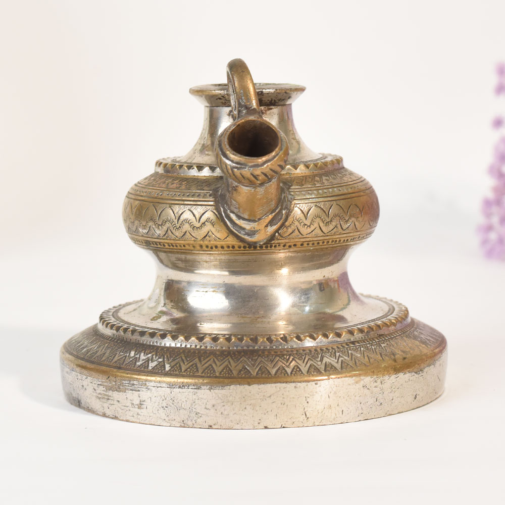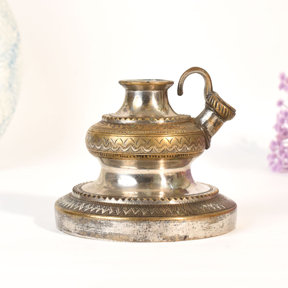This vintage handmade brass hookah base is a striking decorative piece that brings heritage and craftsmanship to modern interiors. Crafted with traditional methods, the brass vessel showcases a warm, naturally aged patina that enhances its timeless character. The rounded design and slender neck make it a perfect choice for unique flower decoration, whether you prefer fresh blooms, dried arrangements, or artistic stems. Every handmade detail reflects the skill of artisans who created pieces meant to last, adding charm and authenticity to your home decor. Ideal for display on coffee tables, mantels, shelves, and creative vignette setups, this vintage brass hookah base stands out as both a functional vase and a collectible art object. The subtle imperfections and signs of age enhance its rustic beauty, making it a perfect addition to bohemian, farmhouse, and eclectic decor styles. Elevate your living space with a decor item that blends cultural history with modern aesthetic appeal.